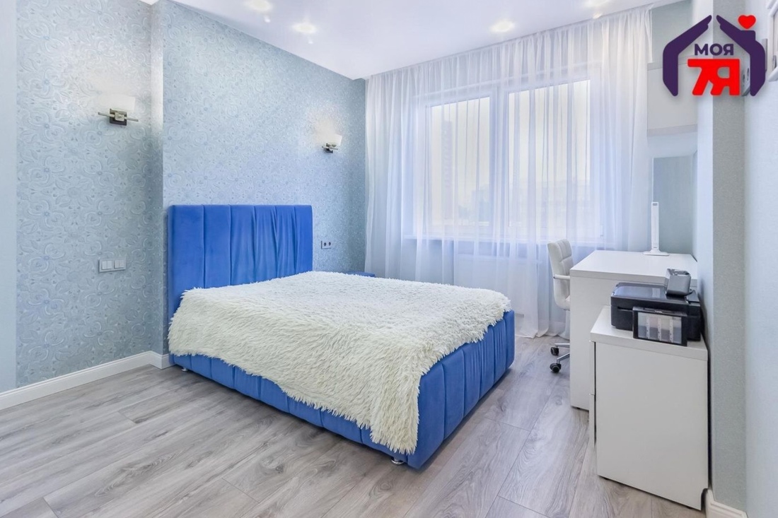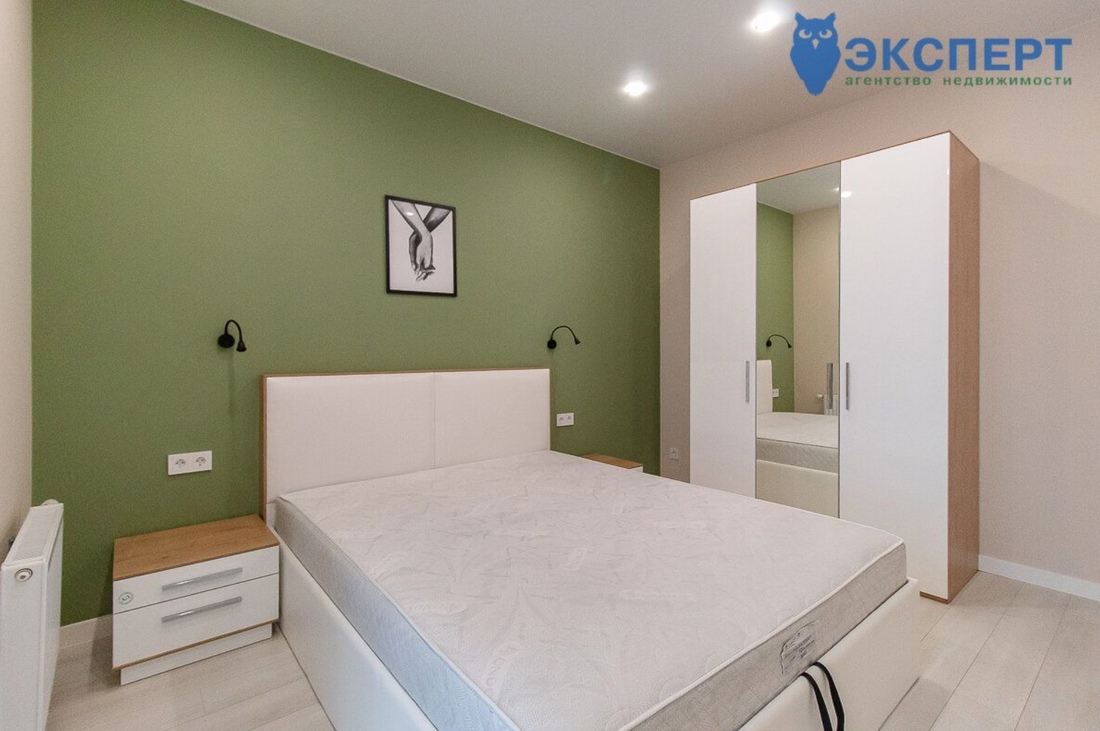 На этом жильё до 100 000 у. е. заканчивается. Дальше нас ждут $115 000 по курсу — за эти деньги предлагают квартиру на 17-м этаже. Ее площадь — 48 «квадратов». В дизайне использованы преимущественно пастельные оттенки — белый, бежевый, кремовый. Их разбавляют единичные акценты: синий диван, зеленая стена в спальне. В целом образ у квартиры минималистичный — такой часто встречается в минских новостройках.