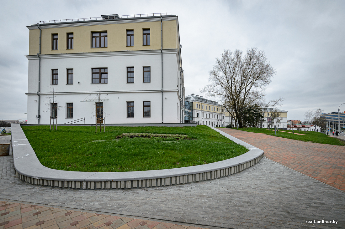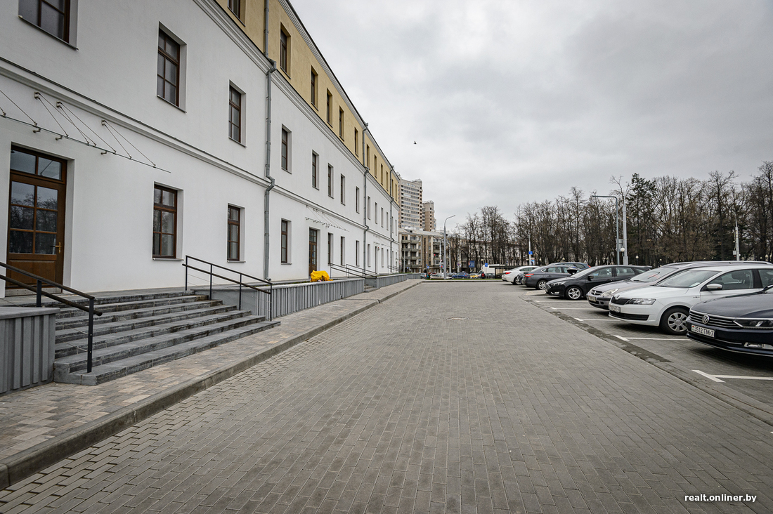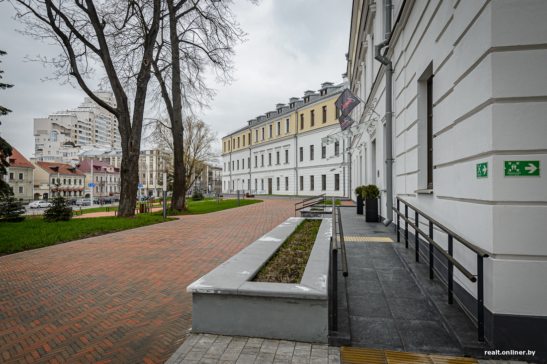 Частью комплекса считаются старинные здания 2-й больницы, а раньше — Троицкого монастыря ордена базилиан. Инвестор их реконструировал. Из трех зданий два (ул. Богдановича, 2/2 и 2/3) занимает отель The Basilian Minsk сети Hilton. Мы делали оттуда репортаж прошлой осенью, вскоре после открытия объекта.