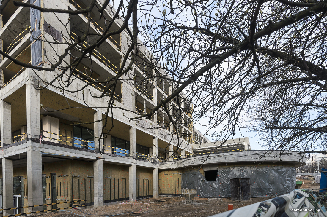 Когда именно закончатся работы над второй частью комплекса (теми самыми отелем и рестораном), не ясно. Onlíner обращался за комментарием к заказчику, компании ООО «КПИ Девелопмент», но ответа пока не получил. Как только появится новая информация, расскажем.