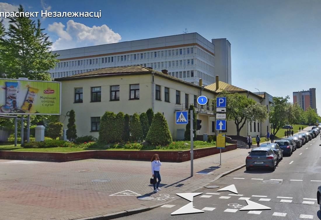 Несмотря на то, что здание хорошо видно с проспекта, оно прописано по улице Петруся Бровки, 1. Это историко-культурная ценность, в 2023 году двухэтажке исполняется 90 лет.