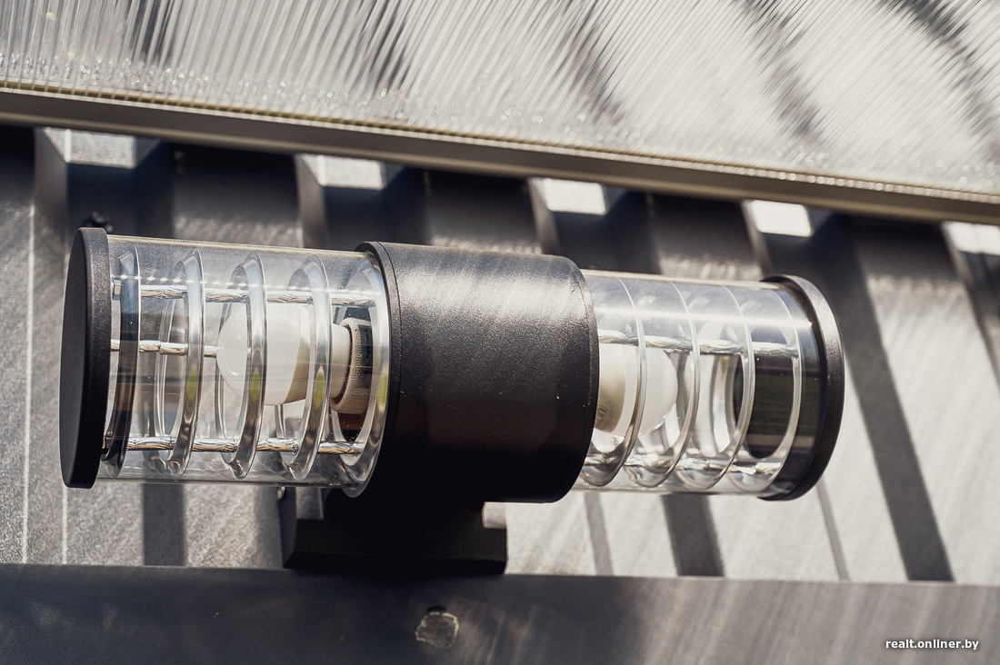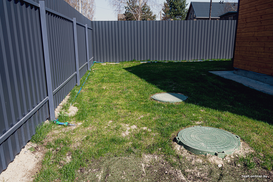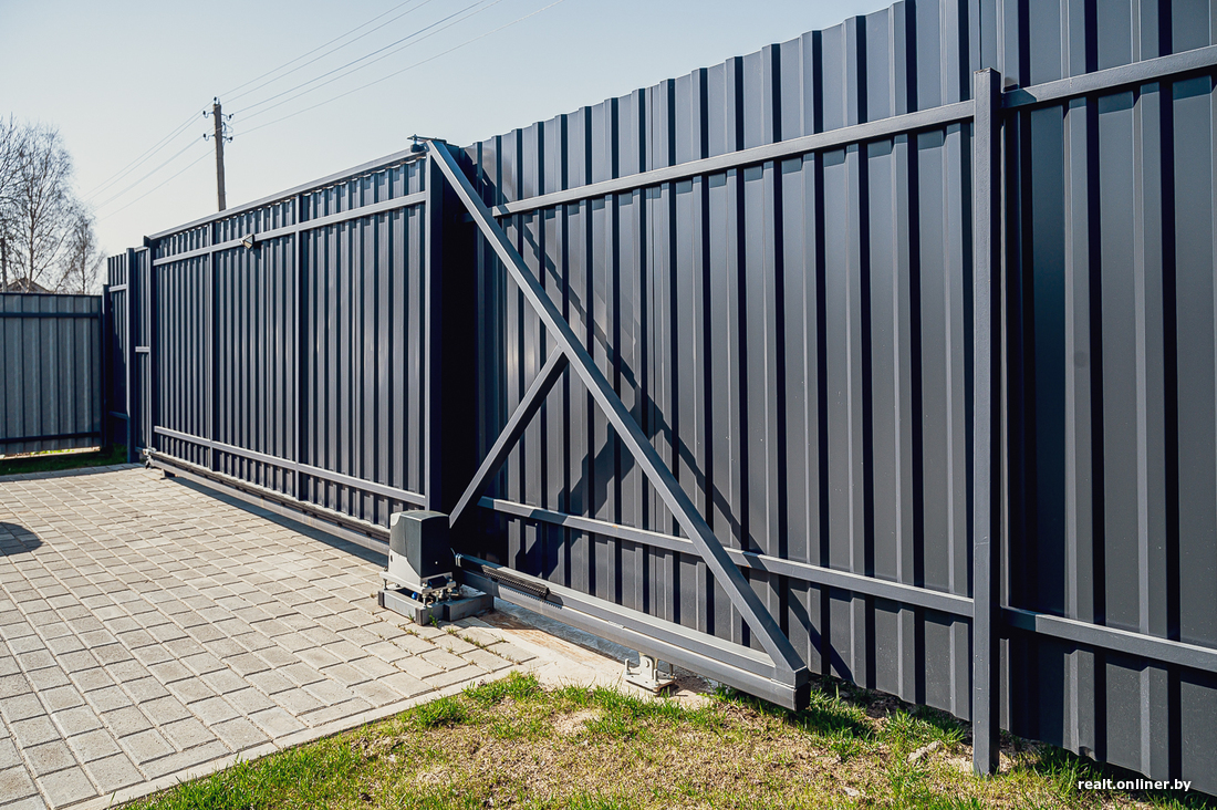 Участок площадью почти шесть соток огорожен. Сергей говорит, что специально заказывал окрашенный с двух сторон металлопрофиль: чтобы соседям тоже было приятно. Ворота откатные — с электроприводом, итальянской автоматикой и датчиками движения (никого случайно не прижмет).