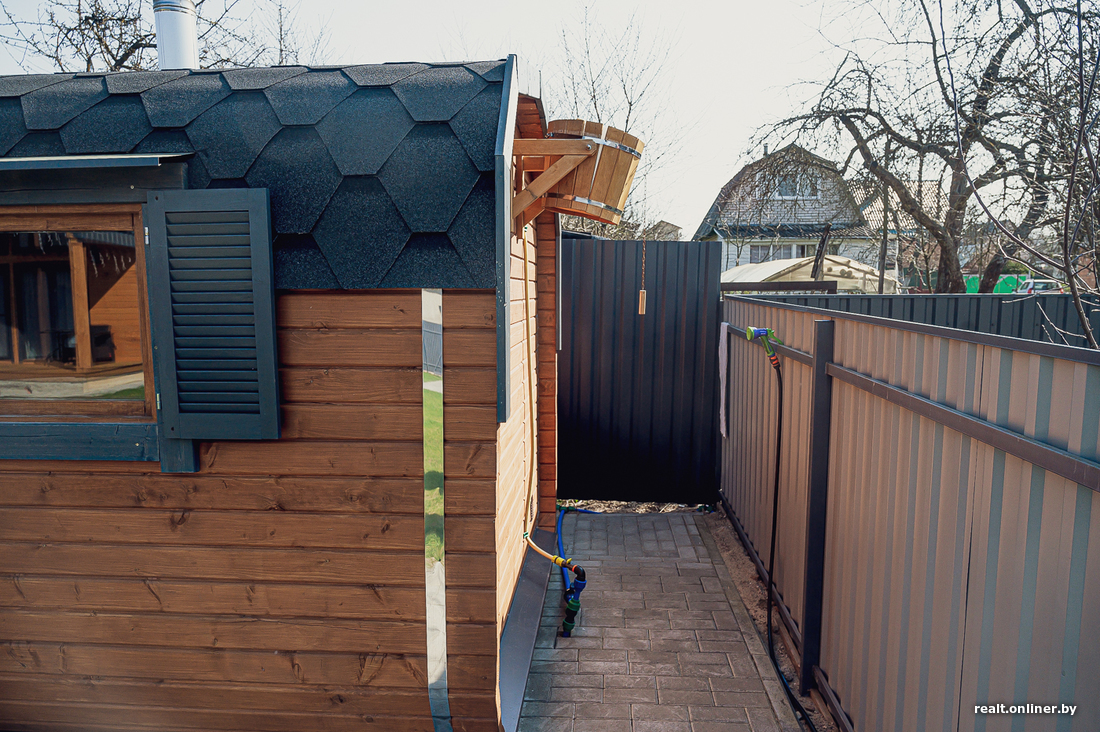 Само собой, не обошлось без бани: парилка, комната отдыха, 120 килограммов камней — все есть. Причем топку специально разместил снаружи, чтобы в бане всегда было чисто. Уточню, что все постройки на участке зарегистрированы — никакого «самостроя».