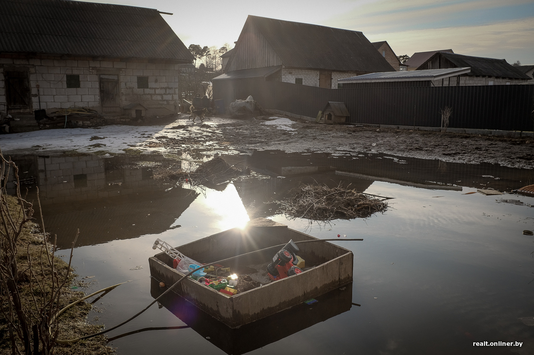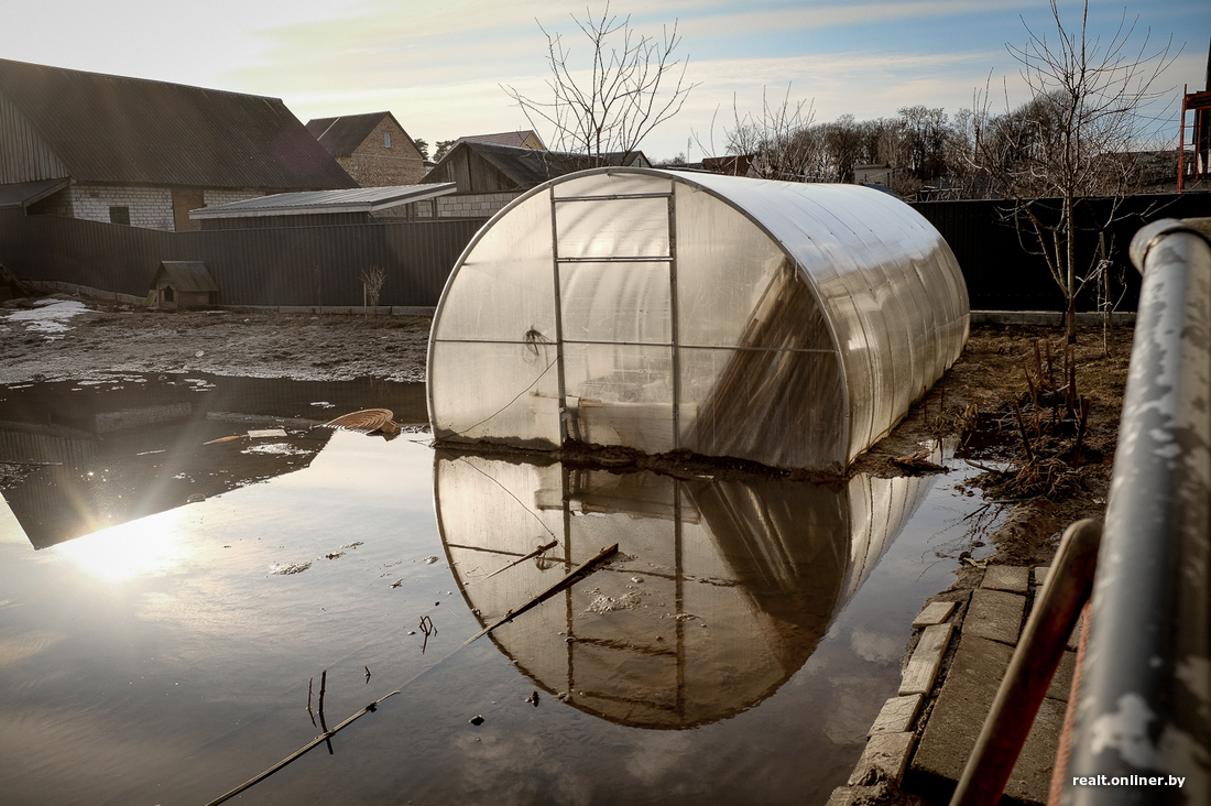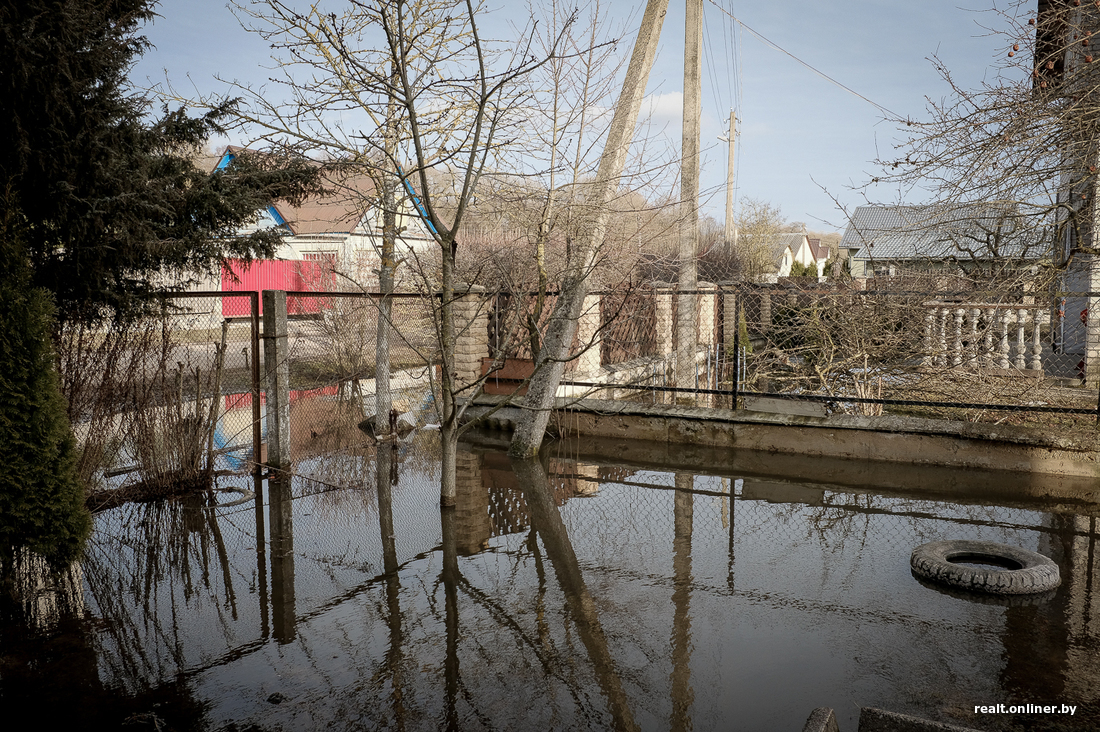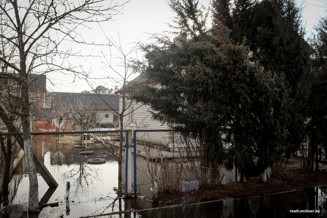И не поверить ему невозможно: приехав в Самохваловичи в середине марта, когда на полях вокруг начал таять снег, мы обнаружили вместо участка настоящее озеро — без резиновых сапог (в идеале рыбацких) на двор лучше не высовываться.