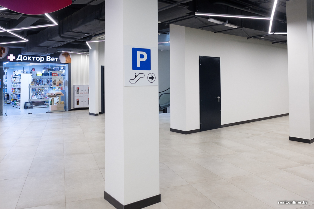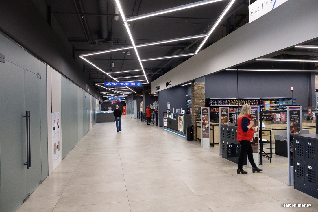 Пока можно пройтись только по первому этажу, остальные закрыты. Помимо супермаркета работают «Белгосстрах», обменник, пункт выдачи заказов компаний «21 век» и Lamoda, «Доктор Вет», точка с цветами.