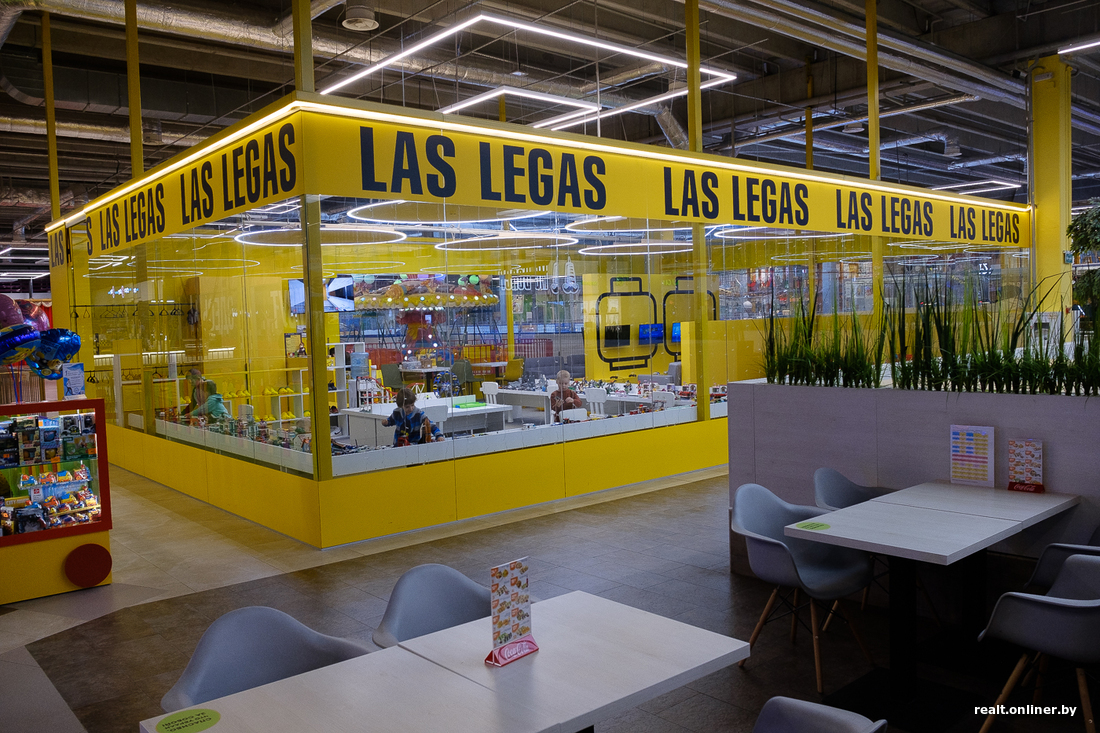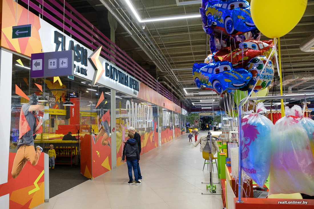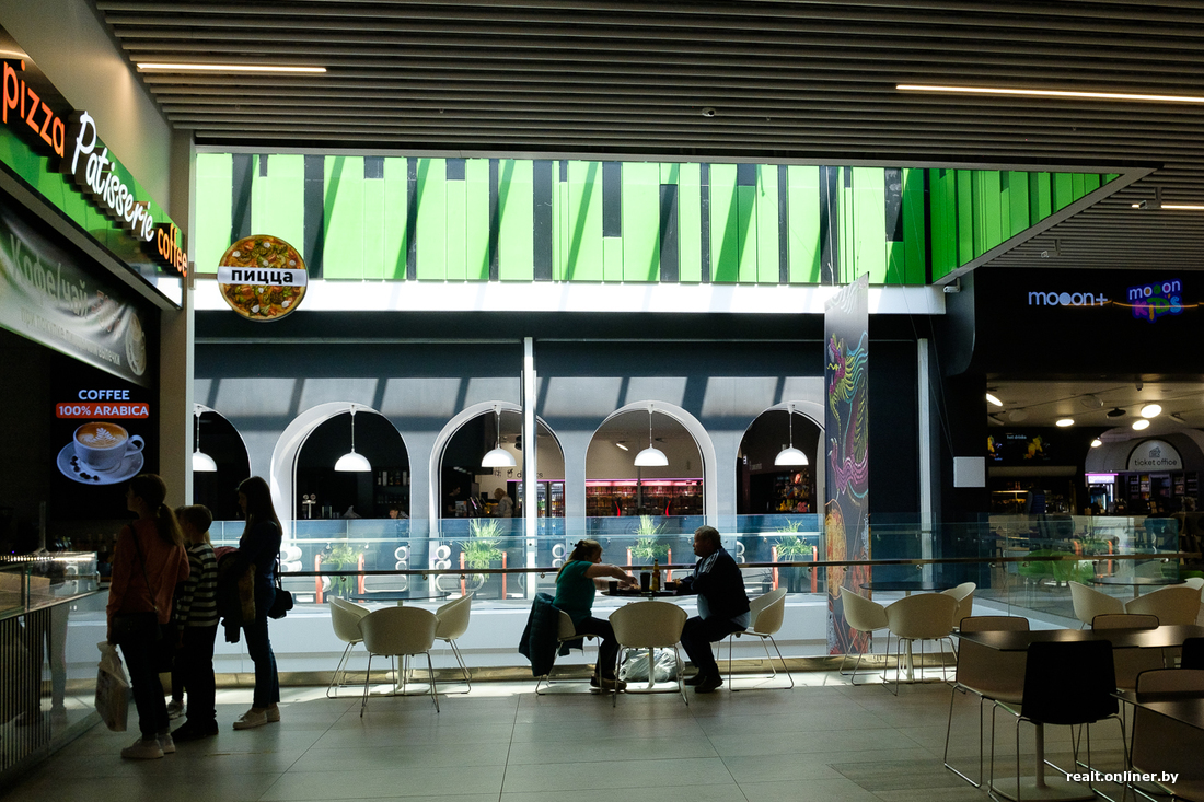 Из относительно нового тут — ледовая арена DiaMond ICE, открывшаяся прошлым летом. Каток стал той самой находкой, позволившей сильно сократить вакантные площади в ТРЦ. Это отметили и в аналитическом отчете от NAI Belarus, который мы уже упоминали.