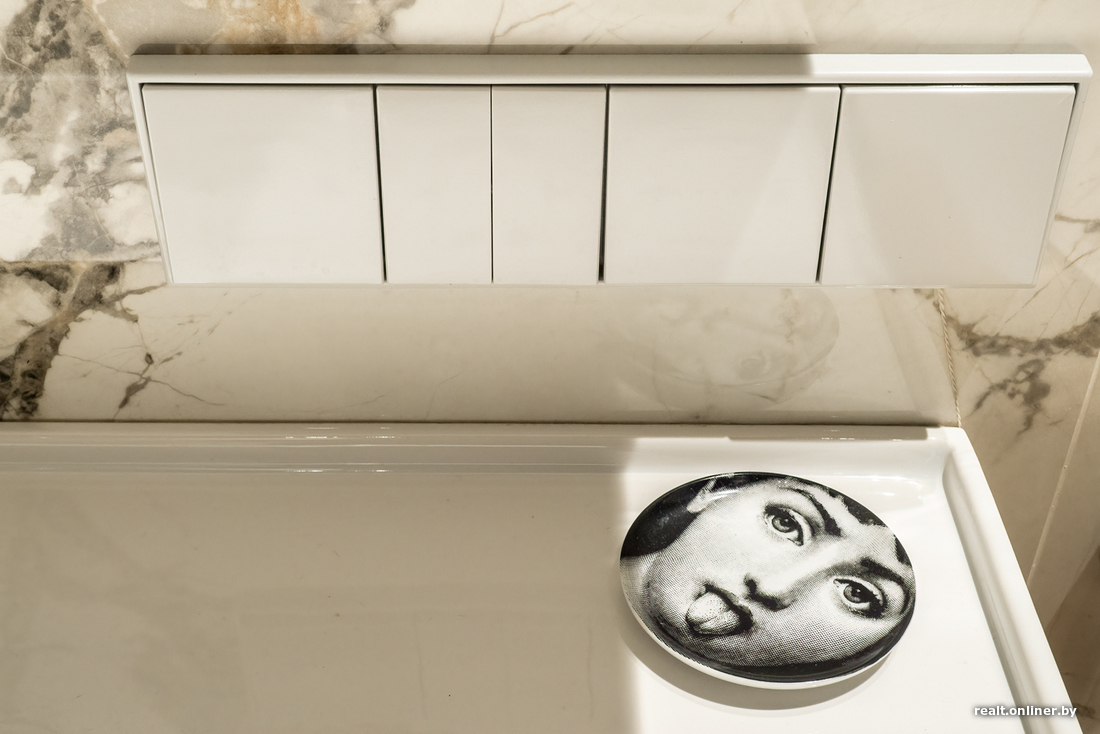 — Вся корпусная мебель в квартире изготавливалась на заказ по нашим эскизам. Она из МДФ и натурального шпона. Какие-то позиции привозились из-за границы. Весь свет тоже от иностранных производителей. Скажем, дизайнерская люстра над обеденным столом из Испании, стоила она около €3000.