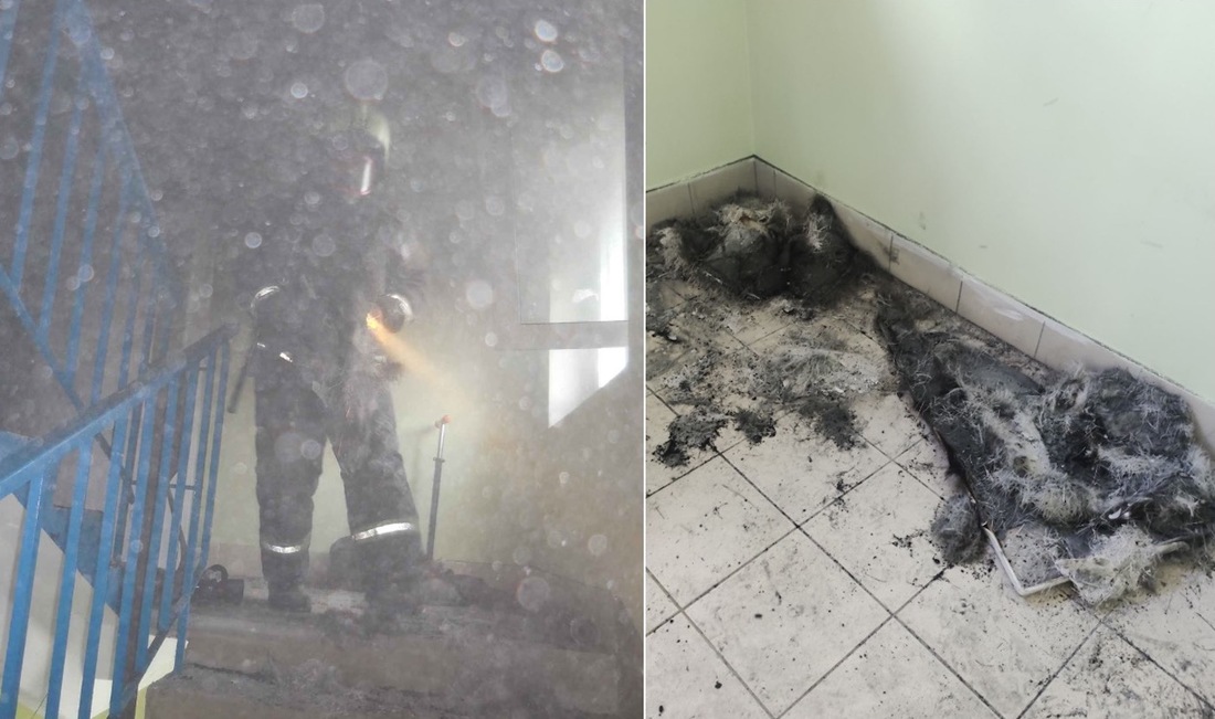 В подъезде из-за пожара закопчены стены. Причину происшествия устанавливают.