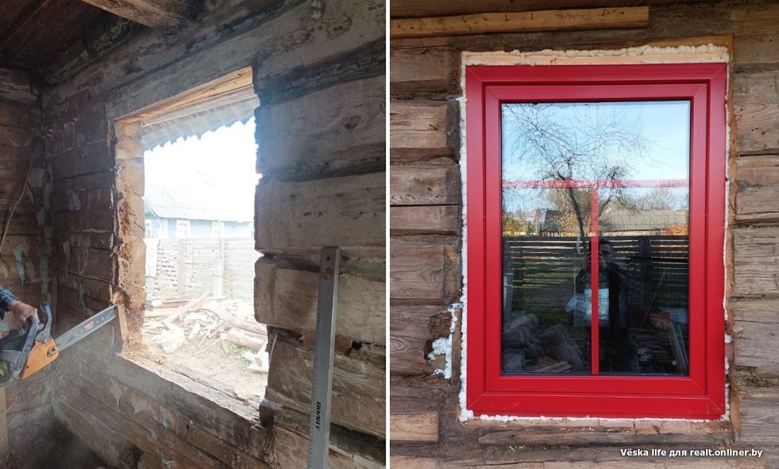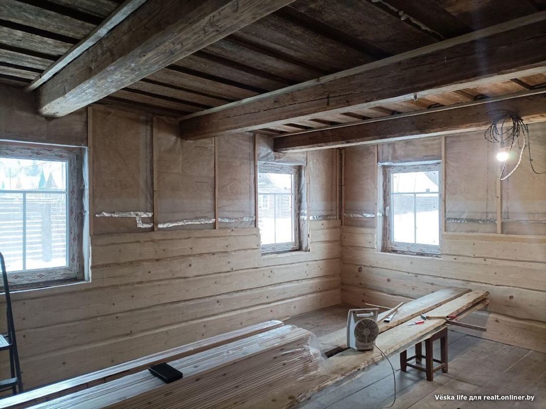 — Переложили пол, опустили его, так как потолок в доме был низкий. Половые доски, кстати, оставили — они были в порядке, — рассказывает мужчина. — Такое высокое качество пиломатериалов было раньше, что доски пролежали прямо на земле столько лет и снизу оказались практически новыми. Сейчас зашиваем стенки внутри имитацией бруса, потолок уже готов. Окна вставлены новые. Осталось поставить подоконники, покрасить стены и пол.