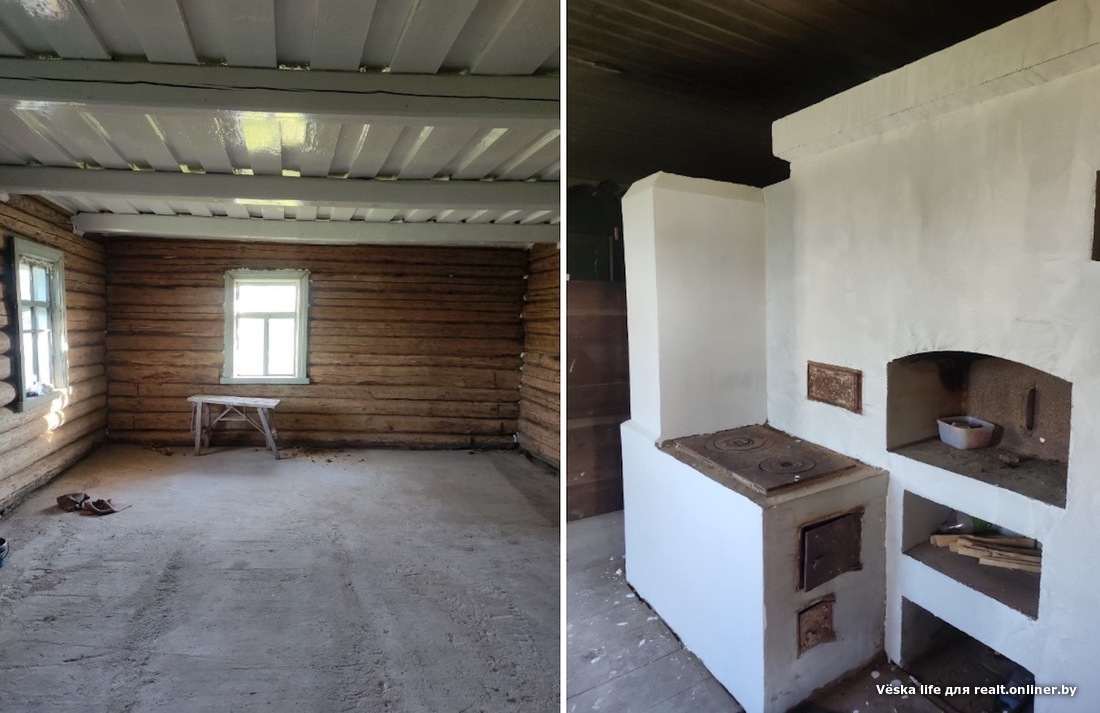 — Там сделали стяжку пола, переложили две печки — русскую и голландку. Почистили брус с внутренней стороны, отшлифовали, покрасили потолок. Подготовили половую доску. Хотим поставить панорамное окно с видом на поле, покрасить стены, пол — и там можно будет вполне комфортно находиться, — рассказывает Михаил.