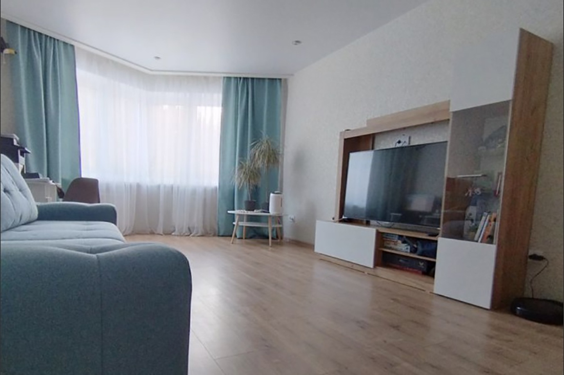 Ремонт современный, приятный. «Малоэтажный дом, всего 17 квартир в подъезде. Чистый подъезд, тихий благоустроенный ухоженный двор с большим количеством зелени, с многочисленными детскими зонами отдыха, рядом зеленая зона, велодорожка. Большое количество парковочных мест», — обрисовывает картину собственник.