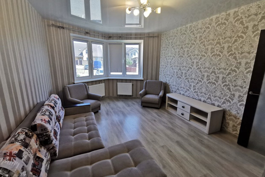 Единственную двушку, выставленную на продажу, хозяин готов отдать за 265 000, или $90 000 по курсу. В ней 66 квадратных метров, две полноценные жилые комнаты (одна из них на 20 метров и с эркером) и 10-метровая кухня. Все окна выходят на одну сторону. Этаж первый.