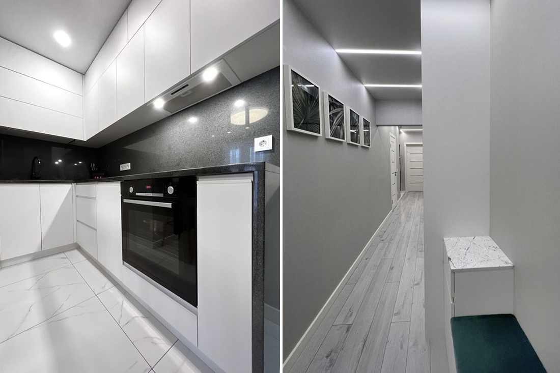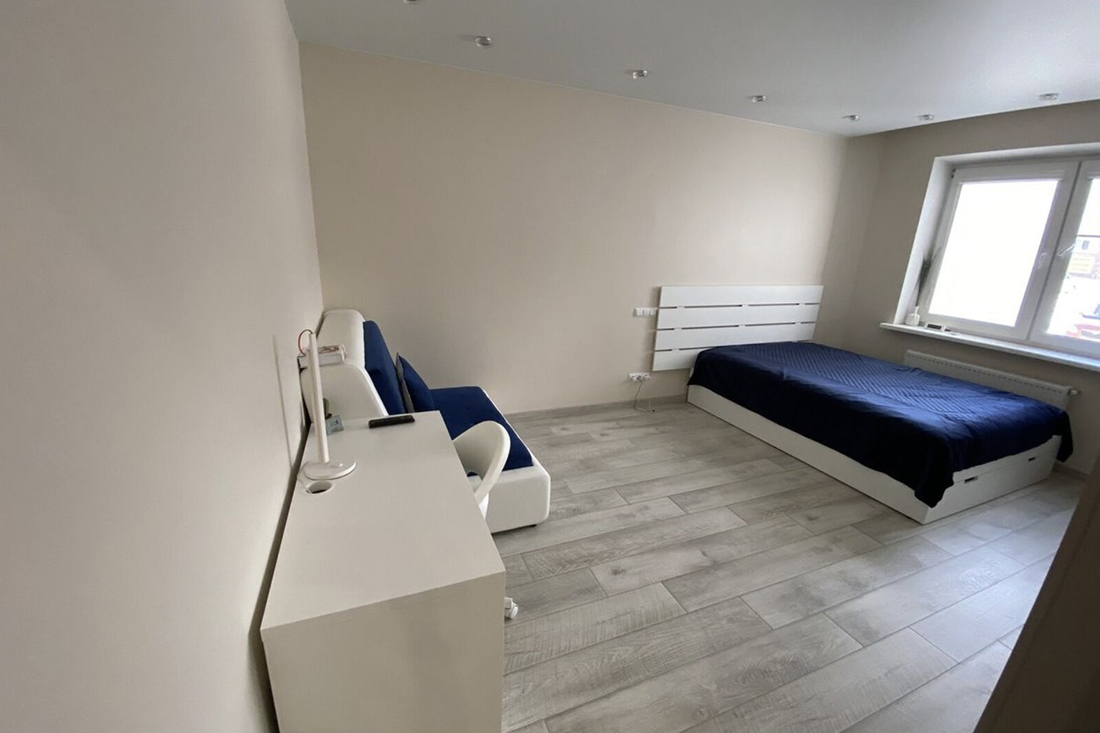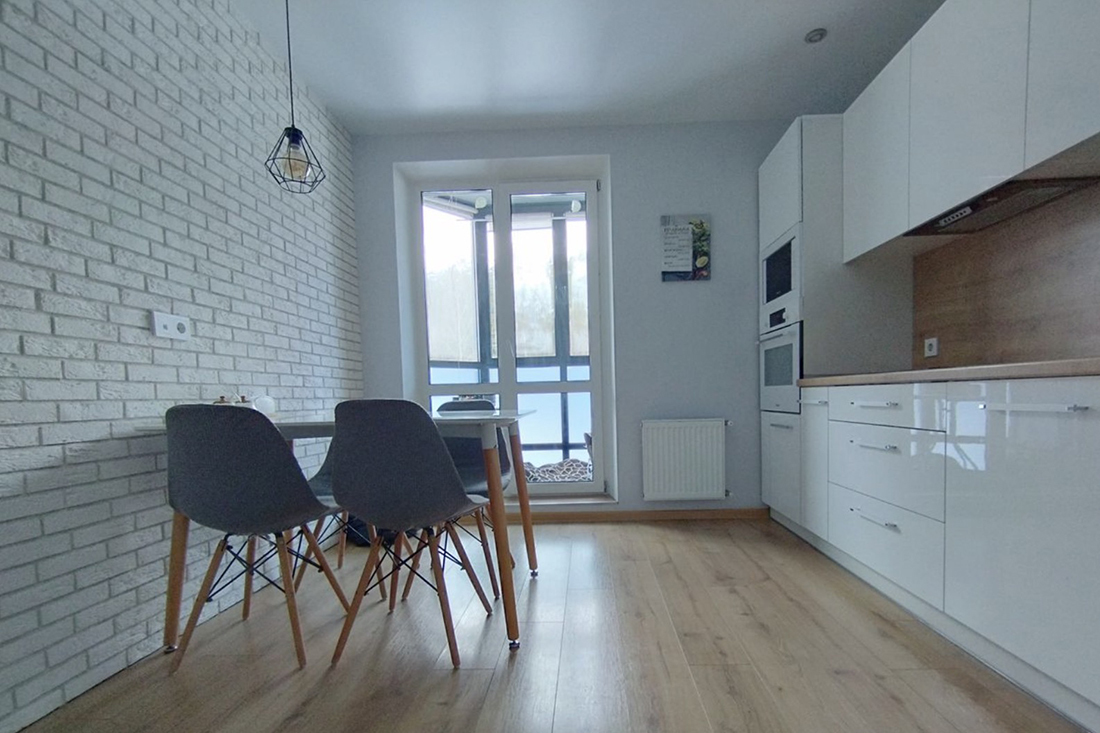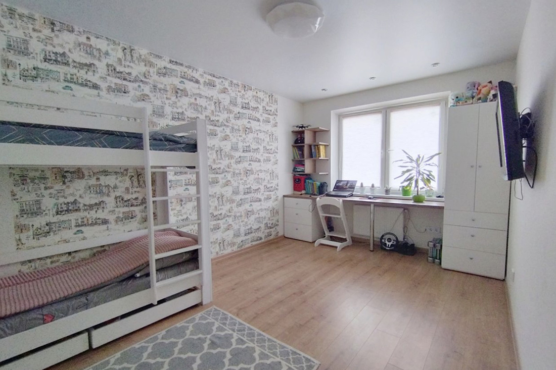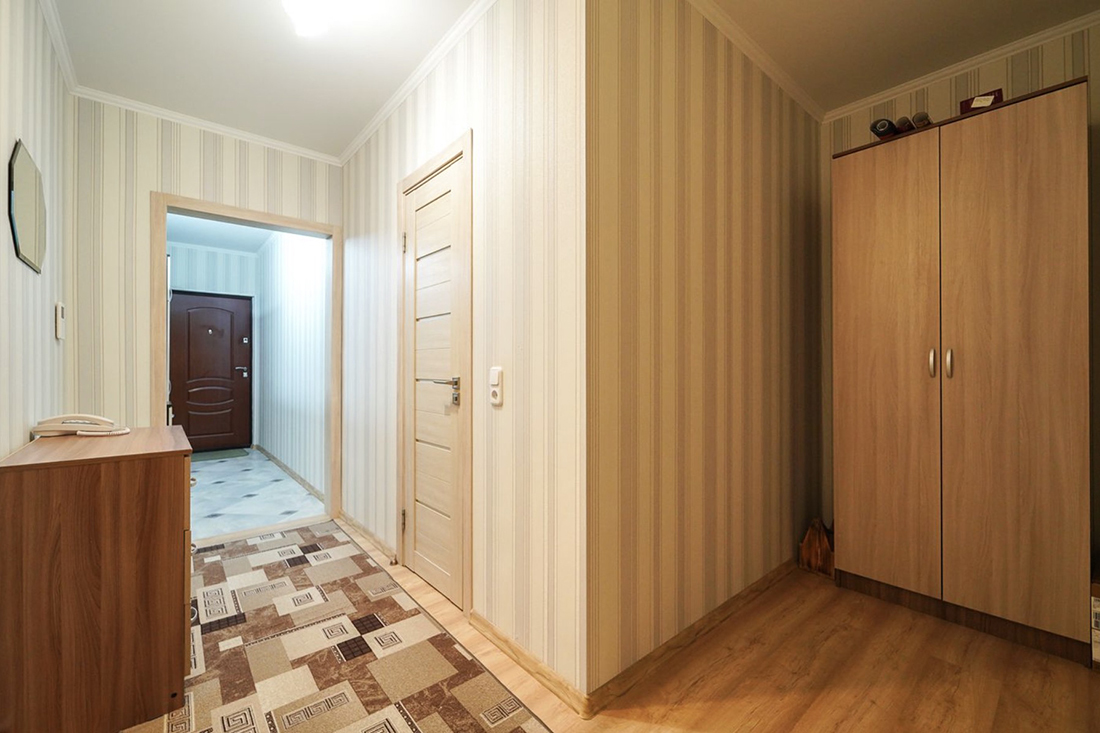 Жилье также полностью отремонтировано. Находиться в такой квартире приятно: цвета и фактуры подобраны хорошо. «В квартире много места для хранения одежды, обуви, инвентаря и предметов хозчасти: шкаф на всю длину коридора (7 метров) + вместительный шкаф в спальне, а также ниша в кровати. В подъезде отдельные места для детских колясок и парковки санок/велосипеда/самоката, в тамбуре шкаф для обуви. Окна выходят на восток и запад. Парковочные места есть всегда. ЖК с обеих сторон окружает лес — прекрасное место для утренних пробежек или вечерних прогулок, катания на велосипедах, скейтах, роликах», — проводит заочную экскурсию агентство.