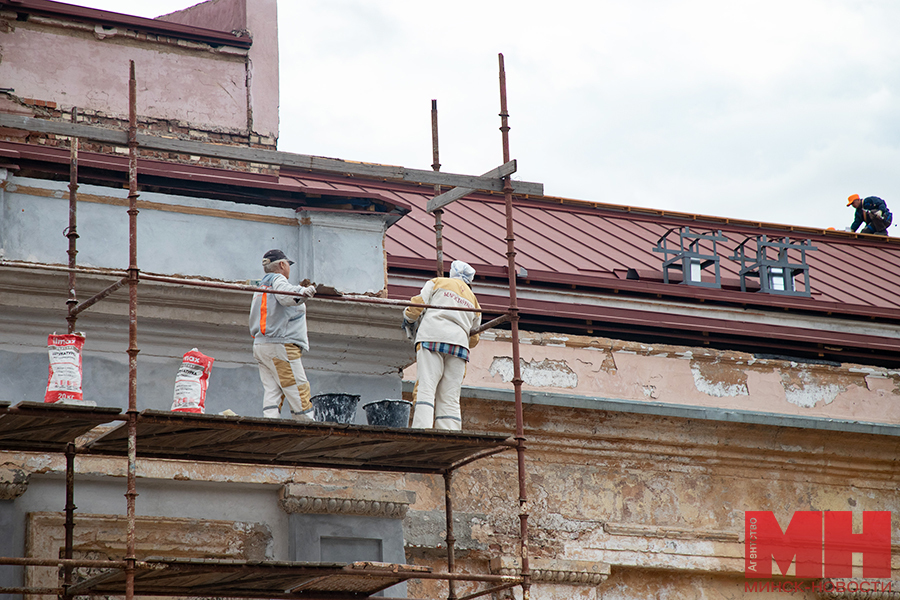 — До Дня города, который отмечается в сентябре, планируем закончить все наружные работы по зданию и благоустройству, чтобы объект приобрел завершенный вид, — сообщил директор КУП «Минская спадчина» Александр Кохан.