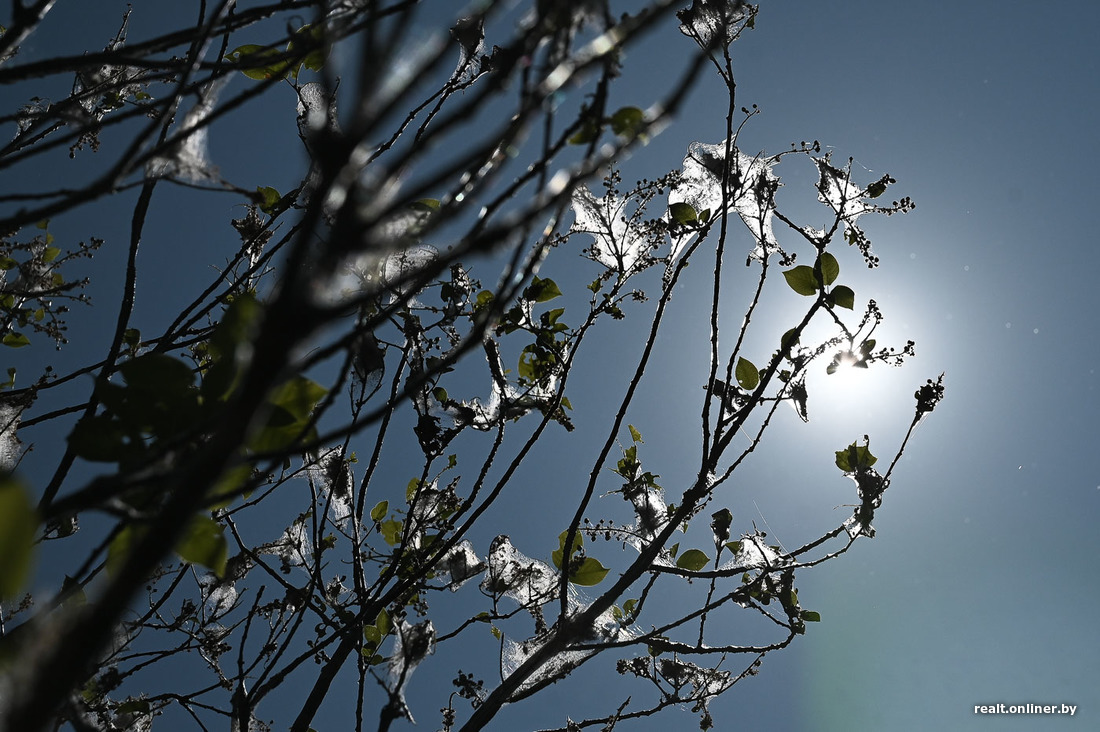 Деревья, густо укутанные паутиной, заметил минчанин Виталий в парке неподалеку от водохранилища Дрозды и Свислочи. Встревожился: вдруг это опасно? Мы переадресовали вопрос экспертам по защите растений. Рассказываем, что это может быть.