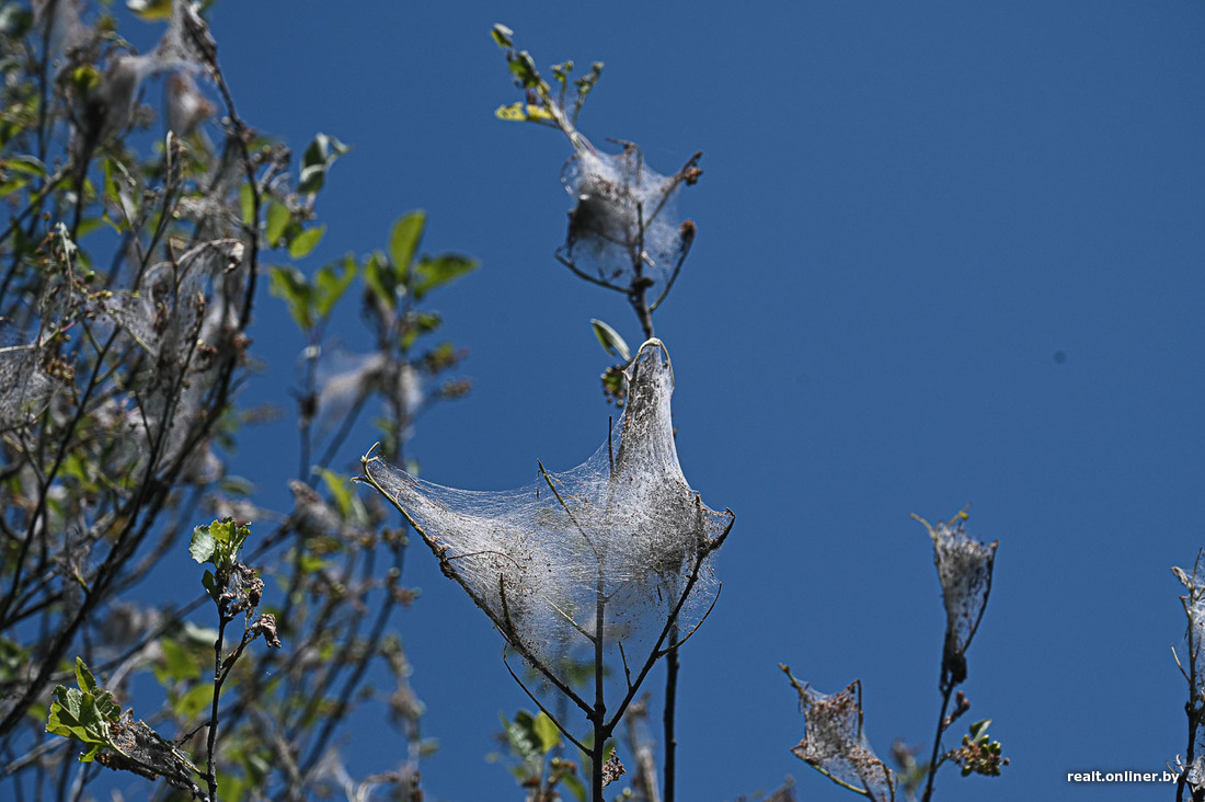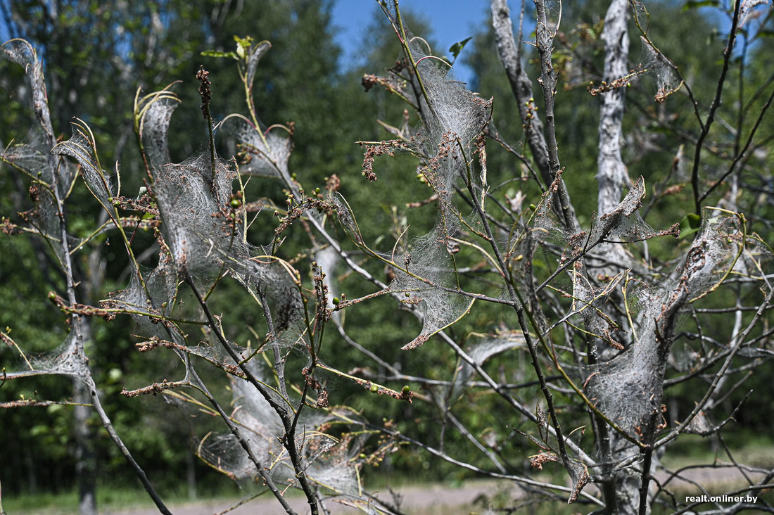 Человек, который увидел деревья в подобной паутине, может обратиться в Госинспекцию по семеноводству, карантину и защите растений либо в местные службы — например, в «Зеленстрой». Инспекторы, которые выезжают на место, отбирают пробы и определяют, кто именно напал на растение.