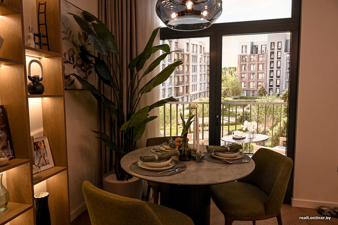 — Некоторые офисы продаж делают мокапы, но они как будто без души. Наша изюминка: эффект присутствия человека, семьи. Старались, чтобы появлялось ощущение, что здесь живут люди. В холодильнике свежие продукты, в шкафах — одежда, в духовке — картошка, — улыбается Надежда.