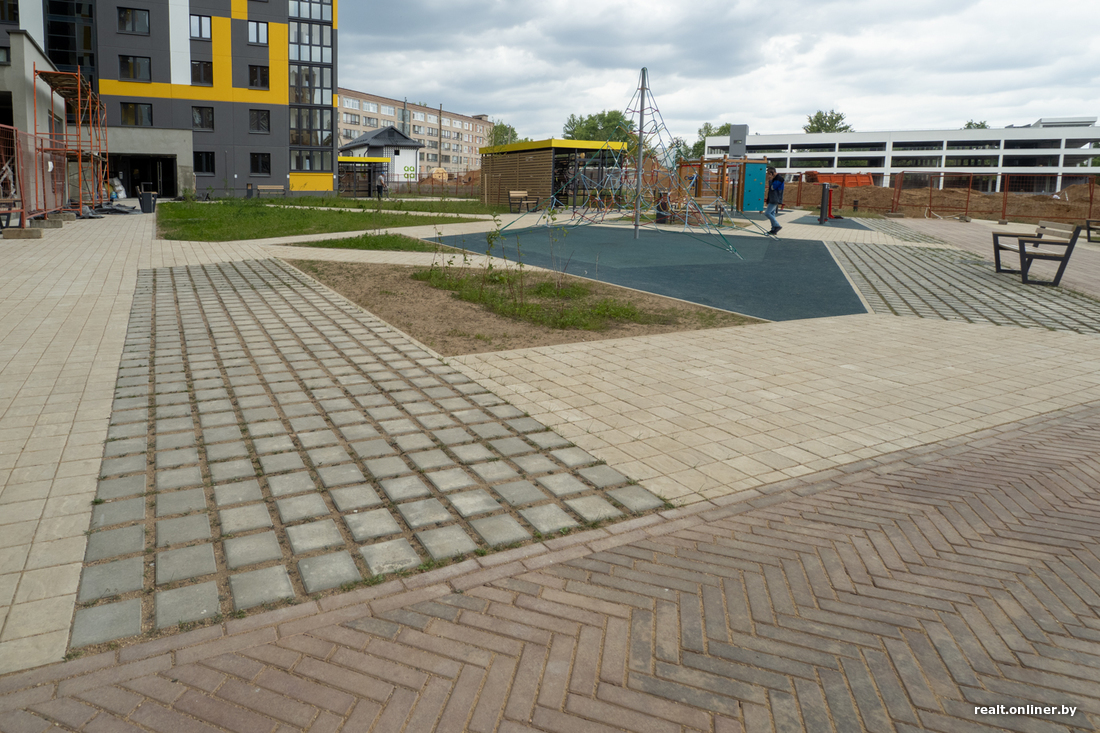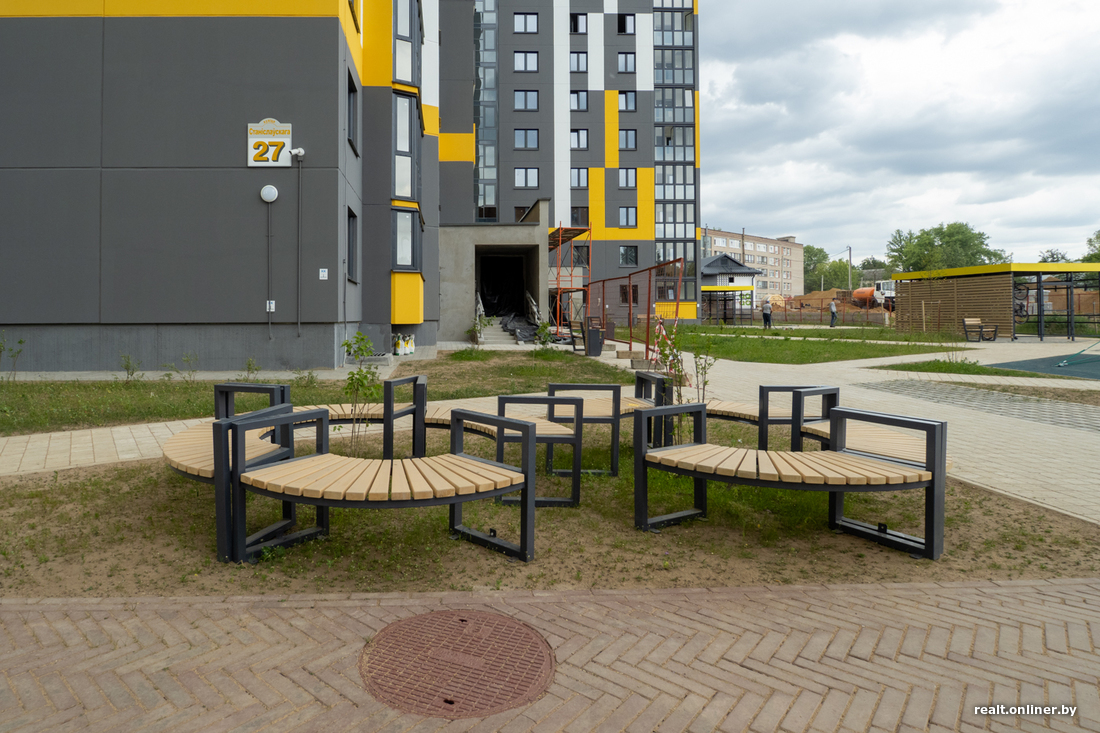— Квартиры в домах второй очереди уже отдали людям. Они делают ремонт, а кто-то, возможно, уже и шторки повесил, заселился, — вводят в курс дела в отделе продаж «БелАТЭП». — Учитывая, что многоэтажки сдавались зимой, некоторые работы перенесли на благоприятный период: покраску фасадов, благоустройство. Сейчас фасады покрасили, заканчивают некоторые работы над входными группами.