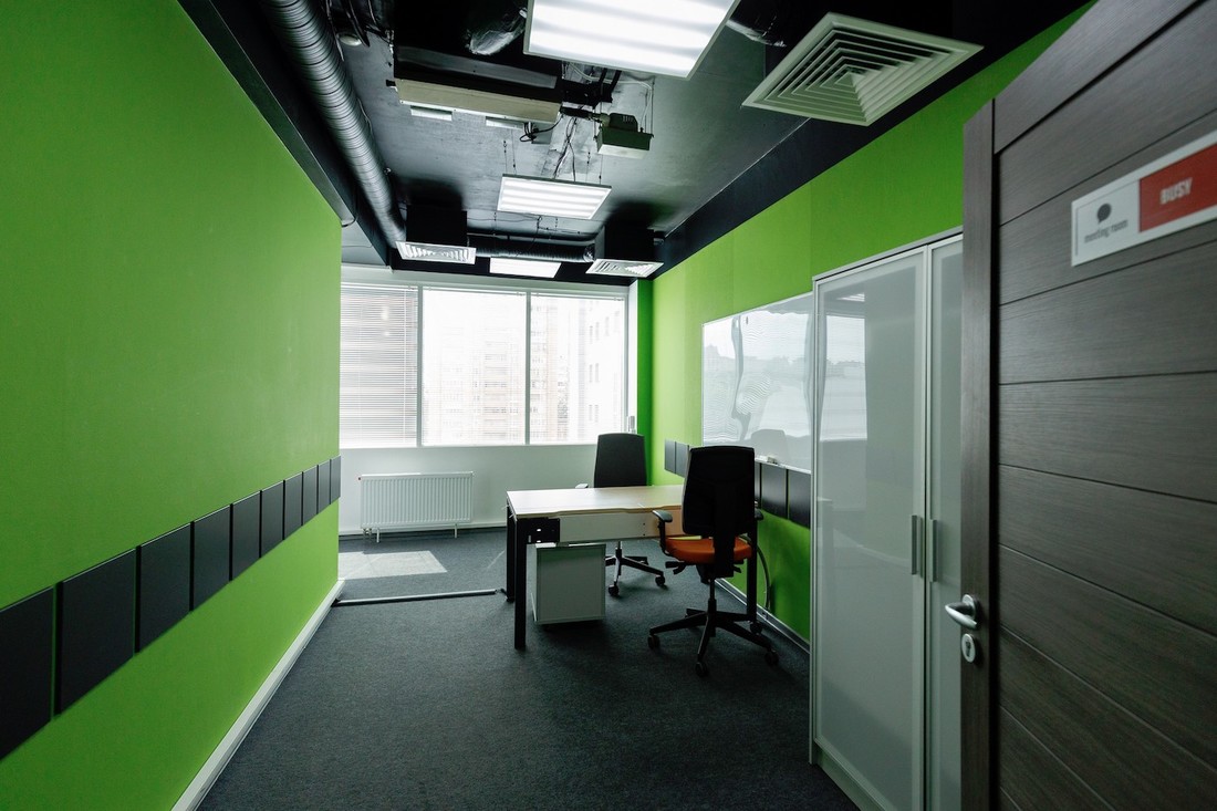 Сейчас в бизнес-центре заняты 16 этажей. Вакантным остается только один — четвертый. Арендодатель показывает, как выглядят пространства: в 50-метровых офисах бросаются в глаза фисташковые стены и голые потолки в стиле лофт. В помещениях можно найти столы, стулья, шкафы и маркерные доски. Все это наследство передадут арендаторам вместе с «квадратами».