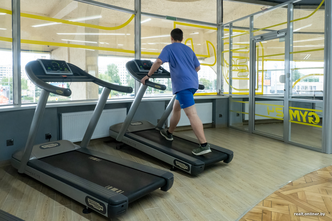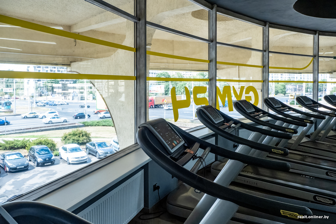 Казино «Белая вежа» на проспекте Машерова закрылось в 2019 году. Сначала на ремонт, потом насовсем. Уход игорного заведения и ночного клуба, снятие вывески не повлияли на городскую топонимику: и само здание с «короной» в центре устойчиво называют Белой вежей. Долгое время здешние помещения стояли пустыми, теперь в них вдохнули новую жизнь. На первом этаже открылась бильярдная с кафе, на втором — крупный тренажерный зал сети GYM24, туда и заглянул Onlíner. Рассказываем, сколько арендаторы вложили в ремонт и какие виды на город открываются с местных беговых дорожек.