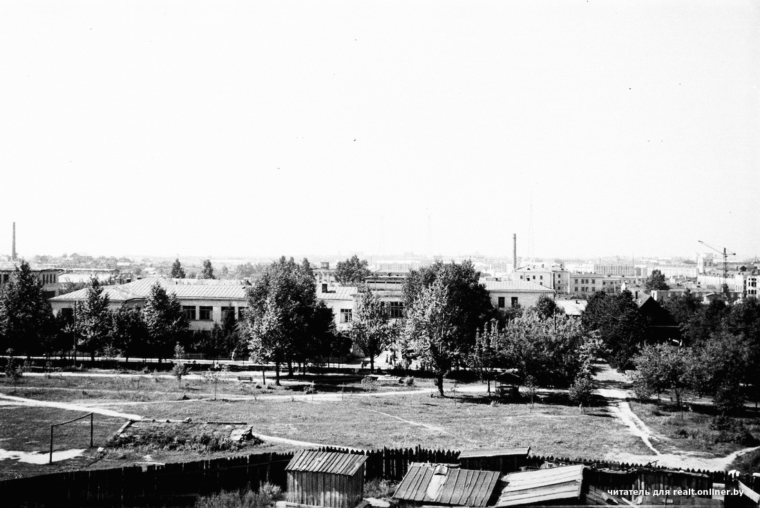 За баракам, напэўна, — будынак клінічнага гарадка першай бальніцы. Удалечыні можна ўбачыць вежу інтэрната БНТУ.