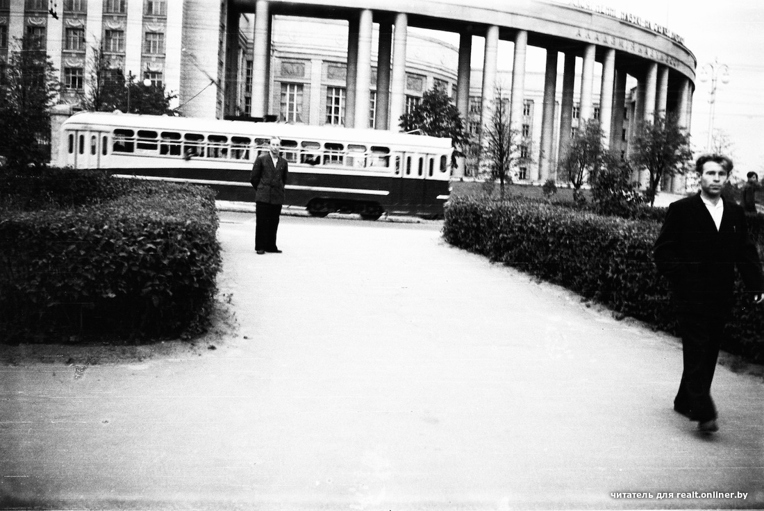 Шмат здымкаў з самой Акадэміяй навук. У кадры нават некалькі разоў трапілі трамваі, якія хадзілі па гэтай частцы праспекта да 1957 года.