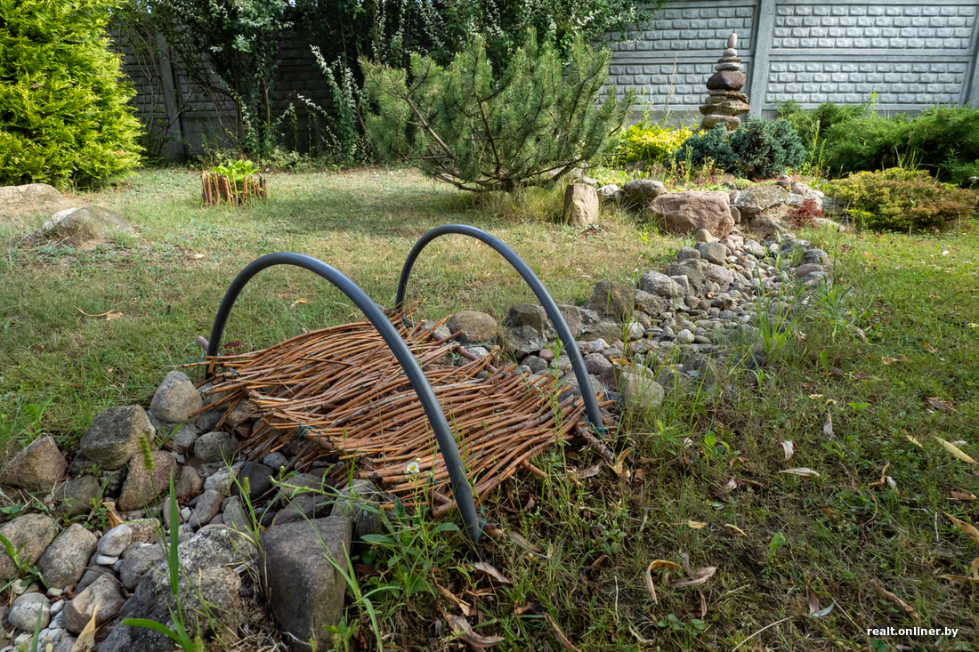 Какой же загородный дом без участка? В Соколе к коттеджу прилагаются почти 11 ухоженных соток: деревья плодовые и декоративные, небольшой сад камней, кусты, цветы, высокие грядки. Можно проявить лучшие качества огородника. Автоматического полива газона на участке нет, но зато есть огромная — под 1000 литров — бочка для сбора дождевой воды.