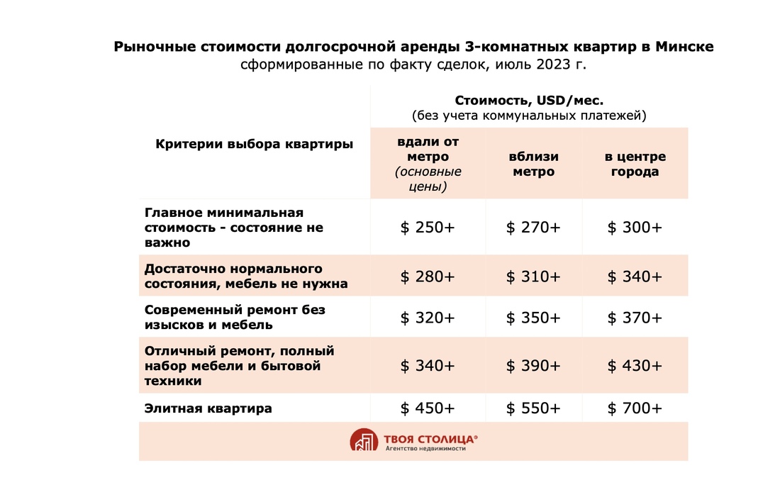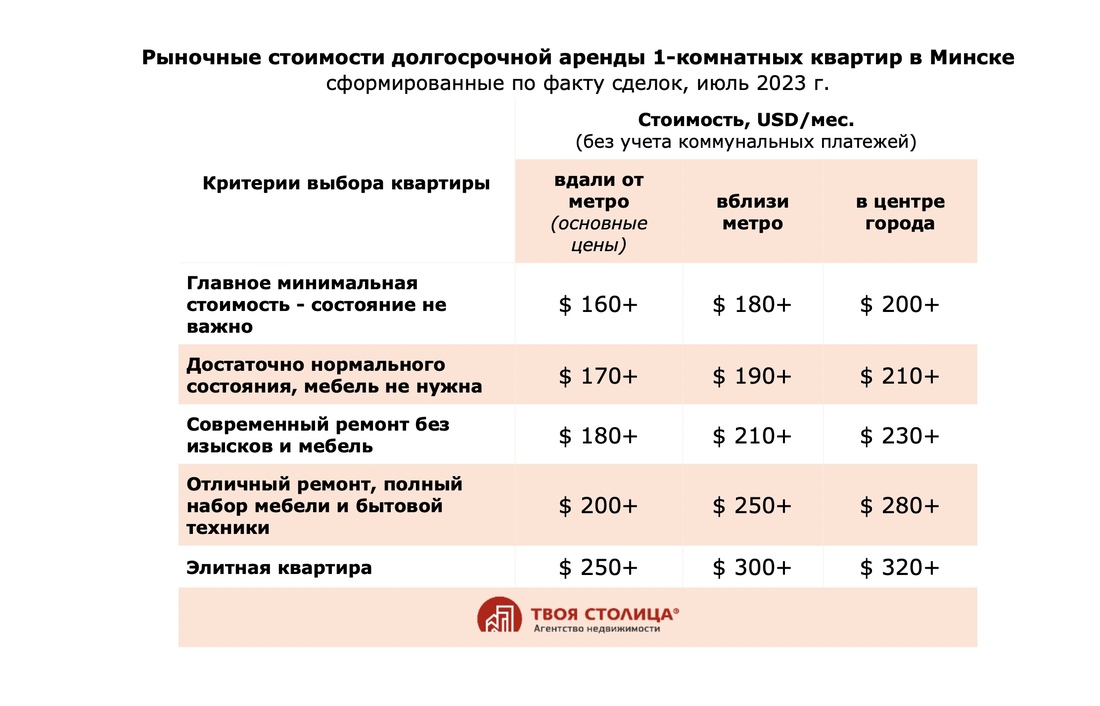 Василий Саванович: — Средняя стоимость таких квартир — $200 — $300. Обычно это старый фонд (хрущевки, брежневки) в спальниках с советским интерьером либо евроремонтом из 2000-х. Понятное дело, что однушка на Якуба Коласа и Веры Хоружей может потянуть и на $500 в месяц, но она точно не будет выглядеть убого. Внешний вид жилья играет не последнюю роль в ценообразовании: в одном и том же доме однушка с нормальным ремонтом обойдется в такую же сумму, что и трешка с плохим.
