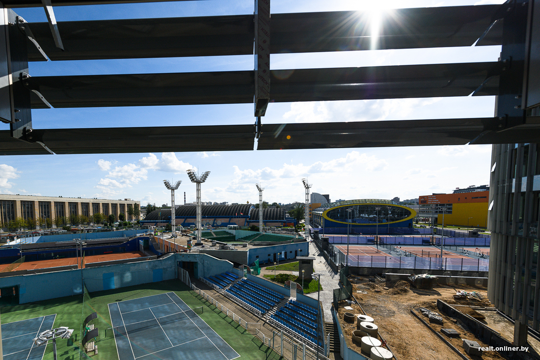 Компания «БелГлобалГарант» также построила шесть теннисных кортов — совсем рядом находится комплекс Республиканского центра тенниса.