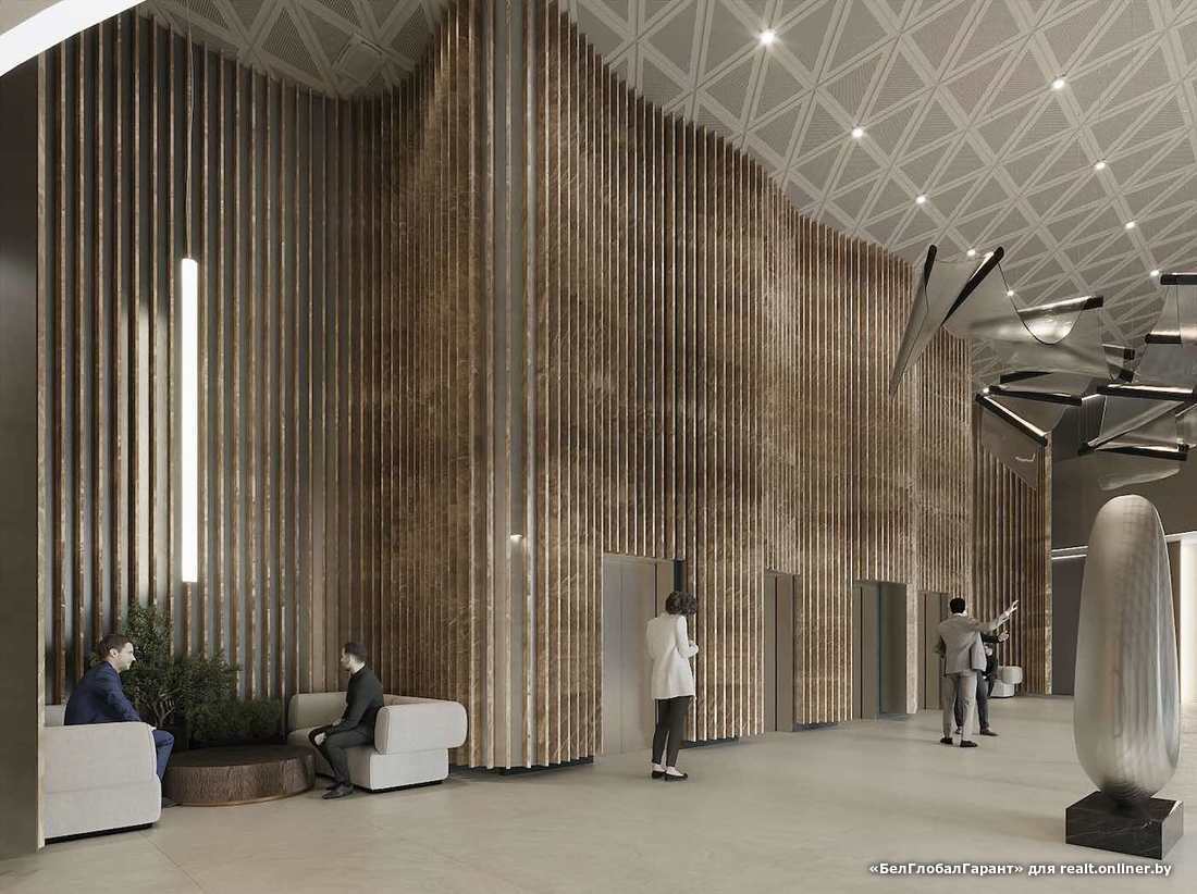 — Отделка вестибюлей и мест общего пользования будет выполнена по современному дизайн-проекту. Здесь будет холл со скульптурами, четыре лифта OTIS премиальной комплектации (всего их в здании девять). Высота потолка — 7,5 метра, — рассказывает Дмитрий.
