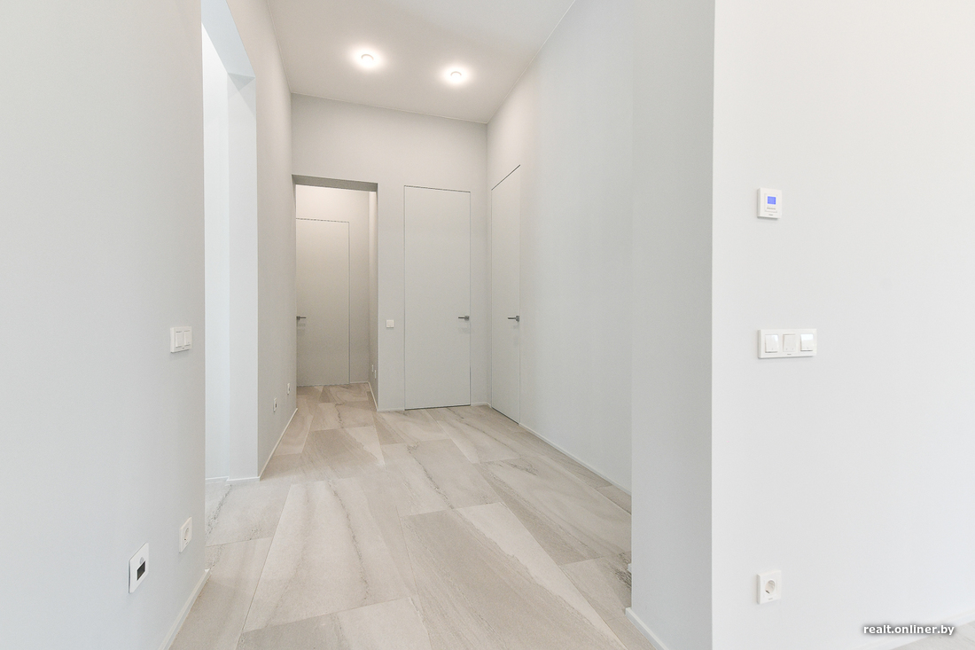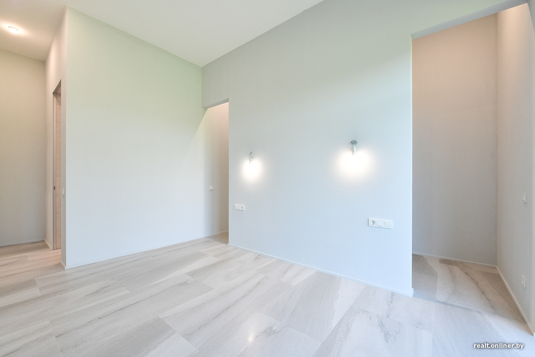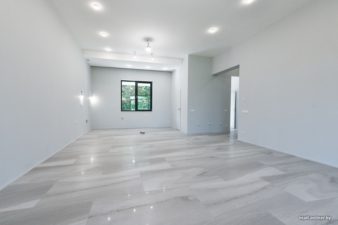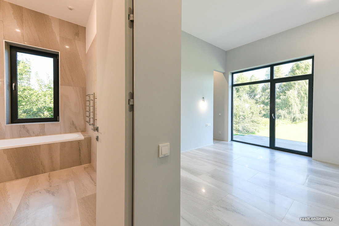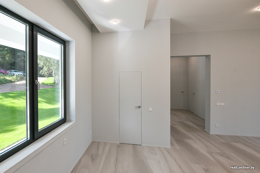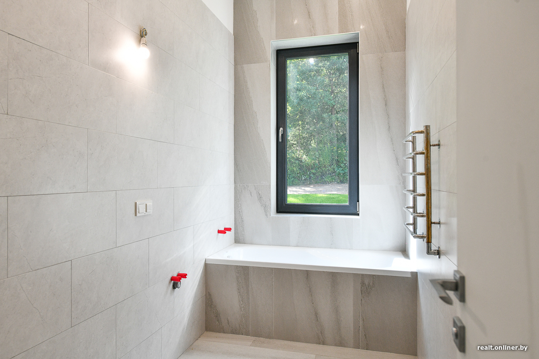 Кстати, не удивляйтесь, что привычных радиаторов возле окон нет. Весь пол идет с подогревом (водяным), а отапливается дом газом. В каждой комнате можно выставить свою температуру: кто как любит. Есть интернет от «Белтелекома».