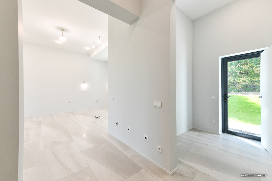 Еще недавно на такие дома мы могли с удивлением смотреть разве что в фильмах и глянцевых журналах: один этаж, плоская кровля, огромные окна. Кто ж так строит? У нас принято сажать на участок «квадрат» со скатной крышей и «бойницами» (теплопотери же!). Но благо времена меняются и вперед шагает не только производство стройматериалов, но и архитектурная мысль. Которую с радостью подхватывают современные белорусы. Теперь во многих коттеджных поселках можно найти аккуратные постройки, в которых нет ничего лишнего — не то что резной колонны или декоративного наличника, а даже «приличной» лестницы, ведущей к входной двери. Посмотрим на один из таких домов изнутри. Это проект «Только в добрые руки», в котором мы знакомим продавцов дач и коттеджей с потенциальными покупателями. Если вы также хотите, чтобы о вашей загородной недвижимости узнали все — пишите на ok@onliner.by (все расскажем и покажем абсолютно бесплатно, главное, чтобы объект был интересным).