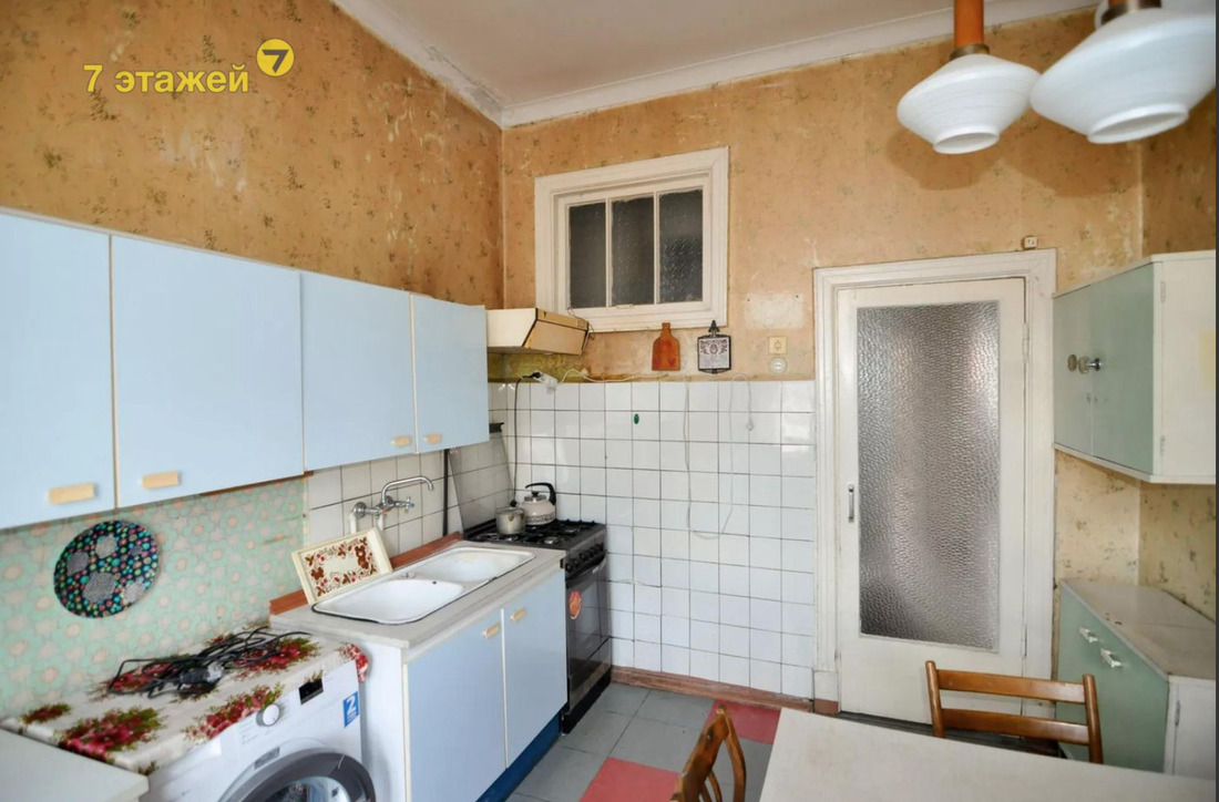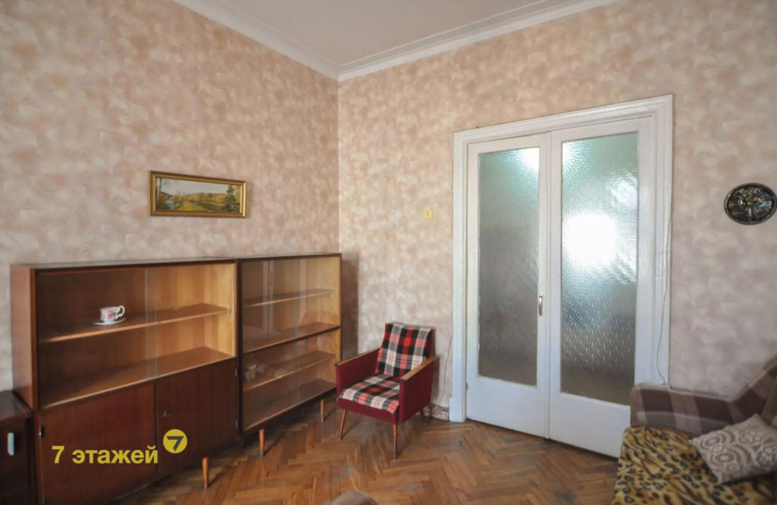 «Высокие потолки — 3,21 м, широкие подоконники, окна на две стороны. Квартира под ремонт, есть возможность воплотить в жизнь все смелые решения», — поясняет агентство недвижимости.