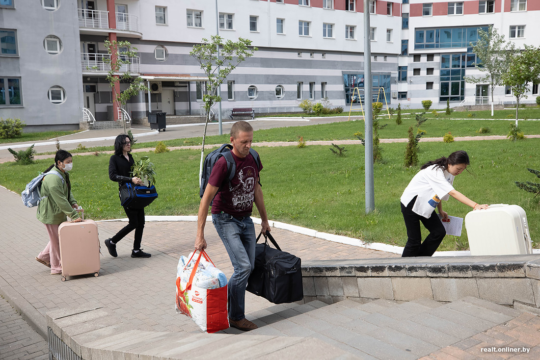 Студенческая деревня в конце августа — самое показательное место, тут концентрация парней и девушек с сумками, чемоданами, а еще их обеспокоенных родителей с пакетами в руках. Последние дни лета для них связаны с долгожданным заселением в общежития.