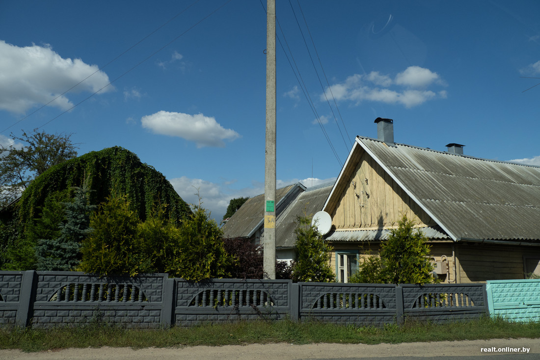 В агрогородке сохранился обширный частный сектор. Есть деревянные хаты, но в основном это все же крепкие каменные коттеджи. Часто усадьбы отгорожены от дорог высокими заборами — получаются малоприступные крепости, не достучишься.