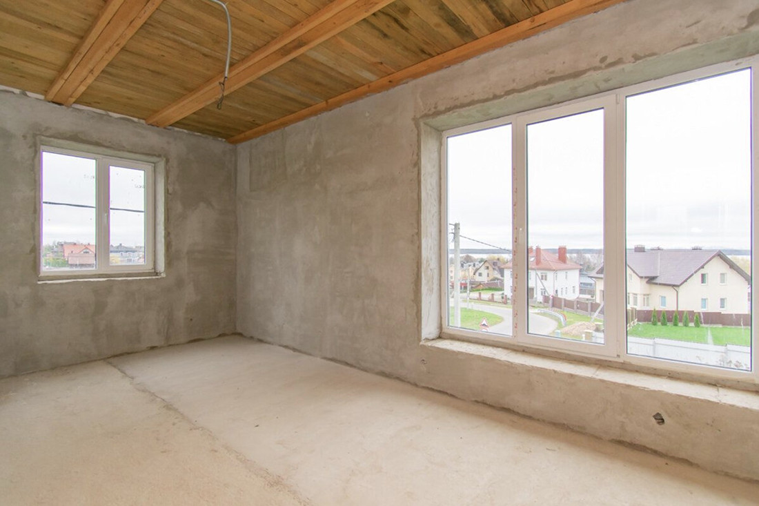 И вот один из таунхаусов снова на продаже. Три этажа (включая мансардный), частичный черновой ремонт, трехметровые потолки — таков «исходник» жилья, расположенного в 400 метрах от водохранилища. Выглядит все довольно симпатично, но, конечно, до заселения еще далеко — надо не только внутри ремонт завершить, но и с фасадом, который не оштукатурен, разобраться.