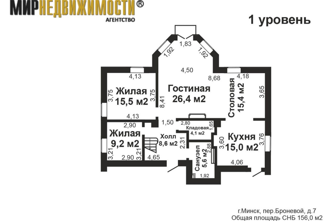 Объект недвижимости занимает 156 «квадратов». На первом этаже находится просторная гостиная — почти 42 кв. м — у кого-то вся жилплощадь таких размеров! Еще здесь есть кухня (кажется, даже с выходом на террасу), гостевая комната, кабинет и гостевой санузел.