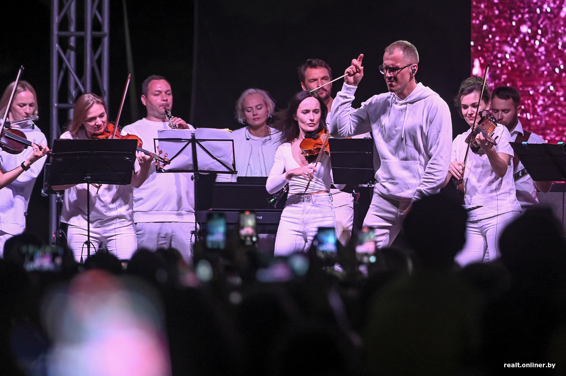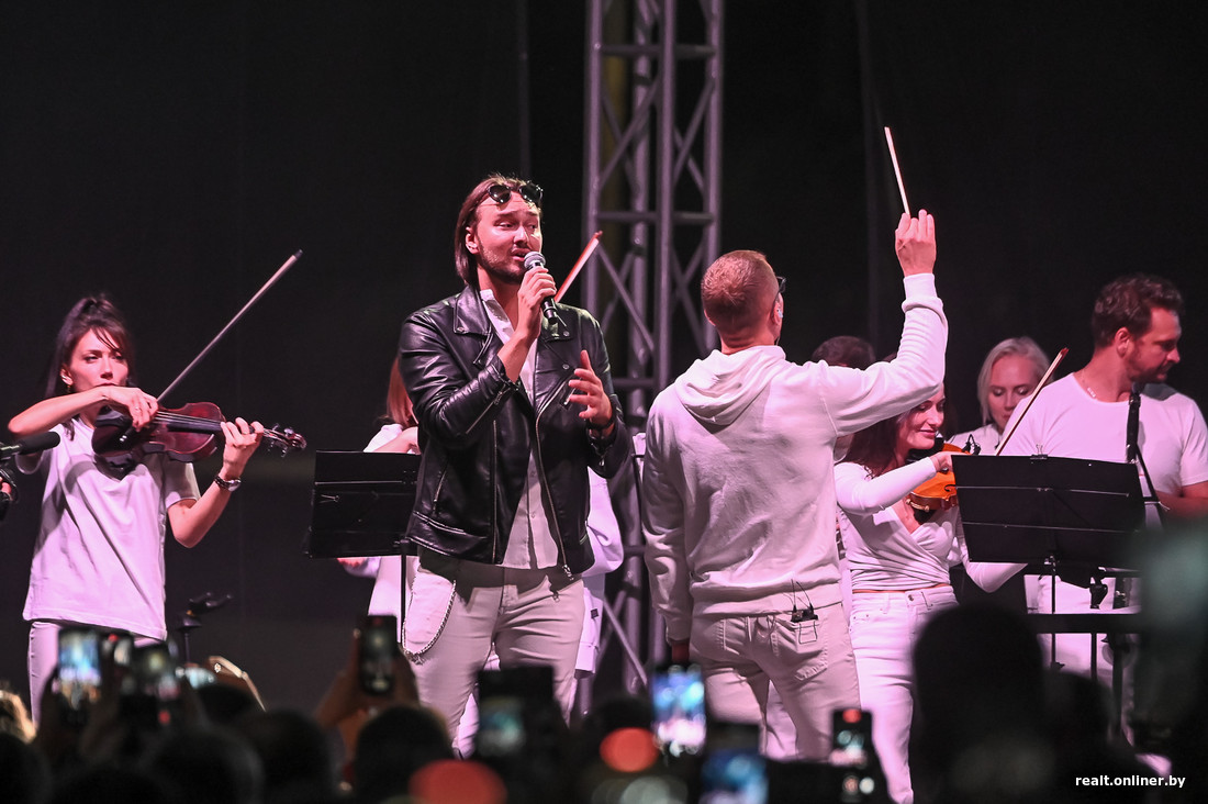 Программу составили, чтобы подстроиться под вкусы разных зрителей. Начался концерт с выступления белорусского хореографического ансамбля «Хорошки». После на сцене появился певец Олег Майами с группой.