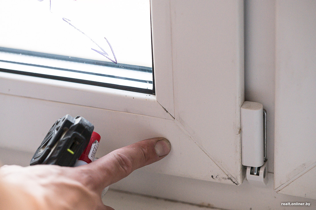 Откосы — место, на котором «сыпались» многие застройщики, — сделаны достаточно аккуратно. Да и сами окна ничего: ПВХ-профиль без трещин (а бывает, что сдают квартиры со сквозными «разломами»), мелкие царапины и сколы подкорректируют с помощью космофена. Створки надо будет отрегулировать, перепады и зазоры по штапикам — исправить.