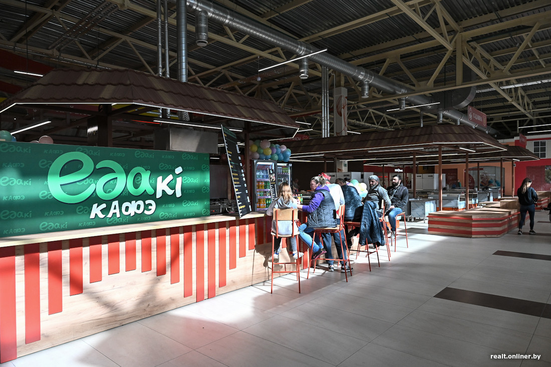 На площадях просматриваются зачатки будущего фуд-корта. Также администрация сейчас находится в поисках арендатора, который сможет освоить 2000 «общепитных» «квадратов». Говорят, приоритет отдадут тому, кто откроет здесь пекарню, обеспечив ТЦ хорошим кофе и ароматной выпечкой.