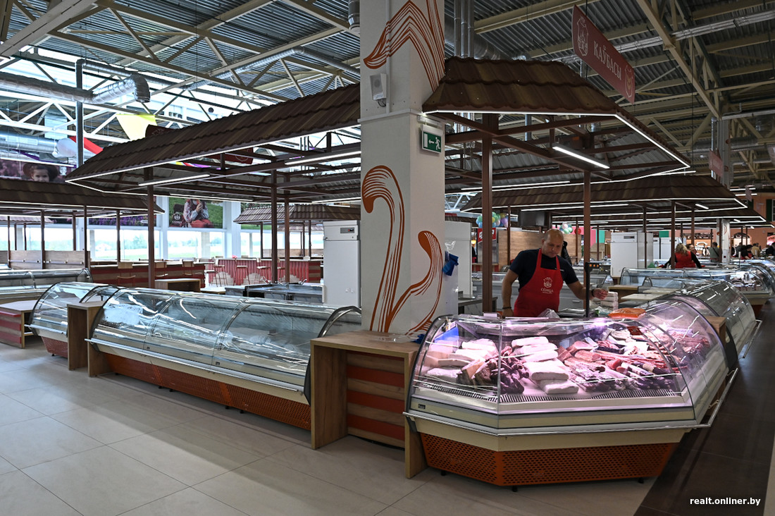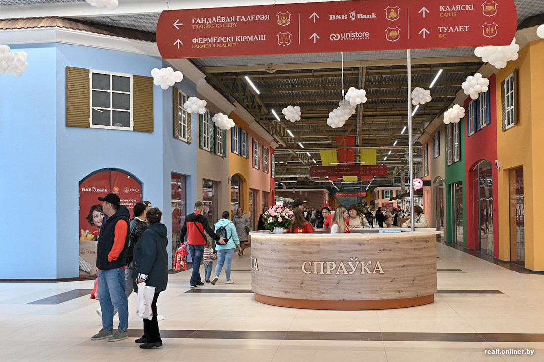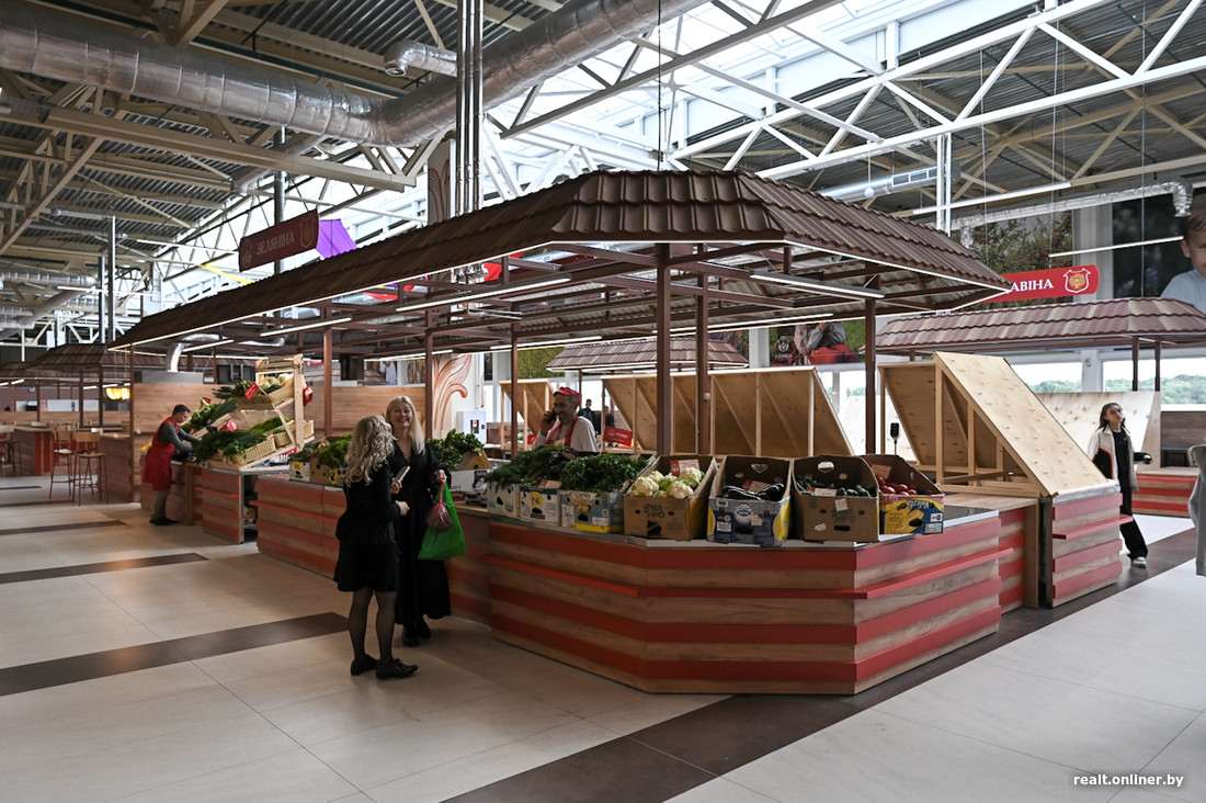 Если изначально «деревня гипермаркетов» была нацелена на лакшери-сегмент, то за долгие годы строительства концепция объекта радикально изменилась. Никаких бутиков, «луивитонов» и тому подобного. Спрос на доступные товары сейчас гораздо выше, чем на товары класса люкс. Отсюда и пляшут. И именно поэтому первым на просторных площадях открылся фермерский кирмаш. Не все холодильники и прилавки еще заполнены, но выбрать уже есть из чего.