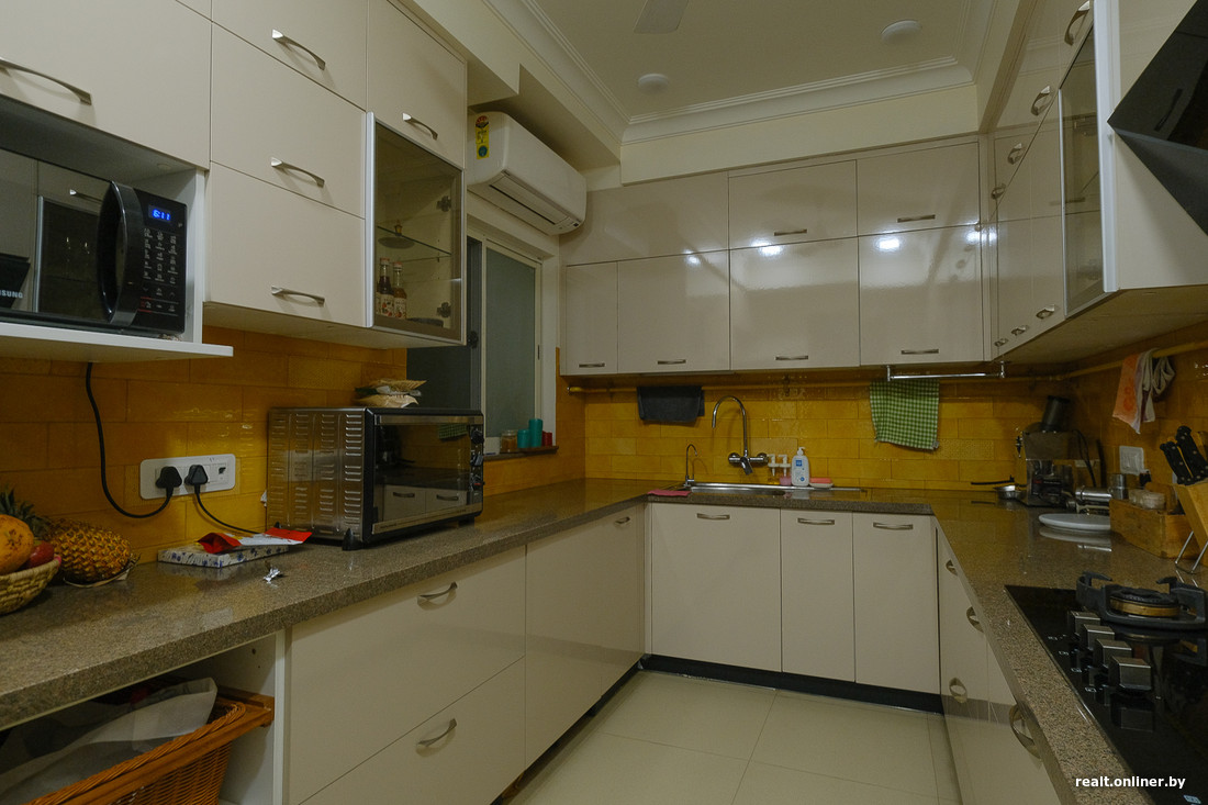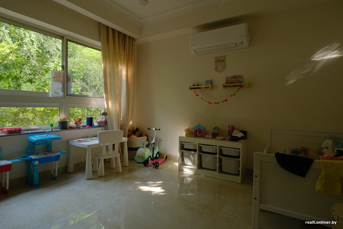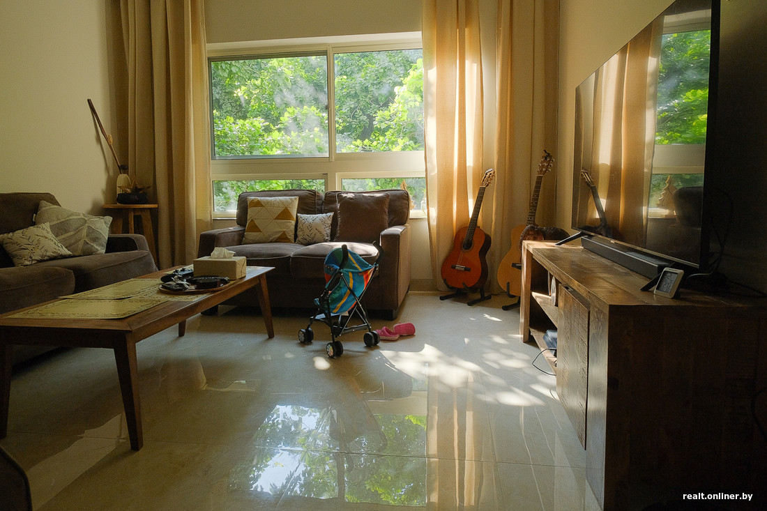 Свою нынешнюю трешку семья снимает за $1600 в месяц, не считая коммунальных услуг. Свежий ремонт, кондиционеры, большие и светлые комнаты — все выглядит прилично. Но «элиткой» такую квартиру все же не назовешь.