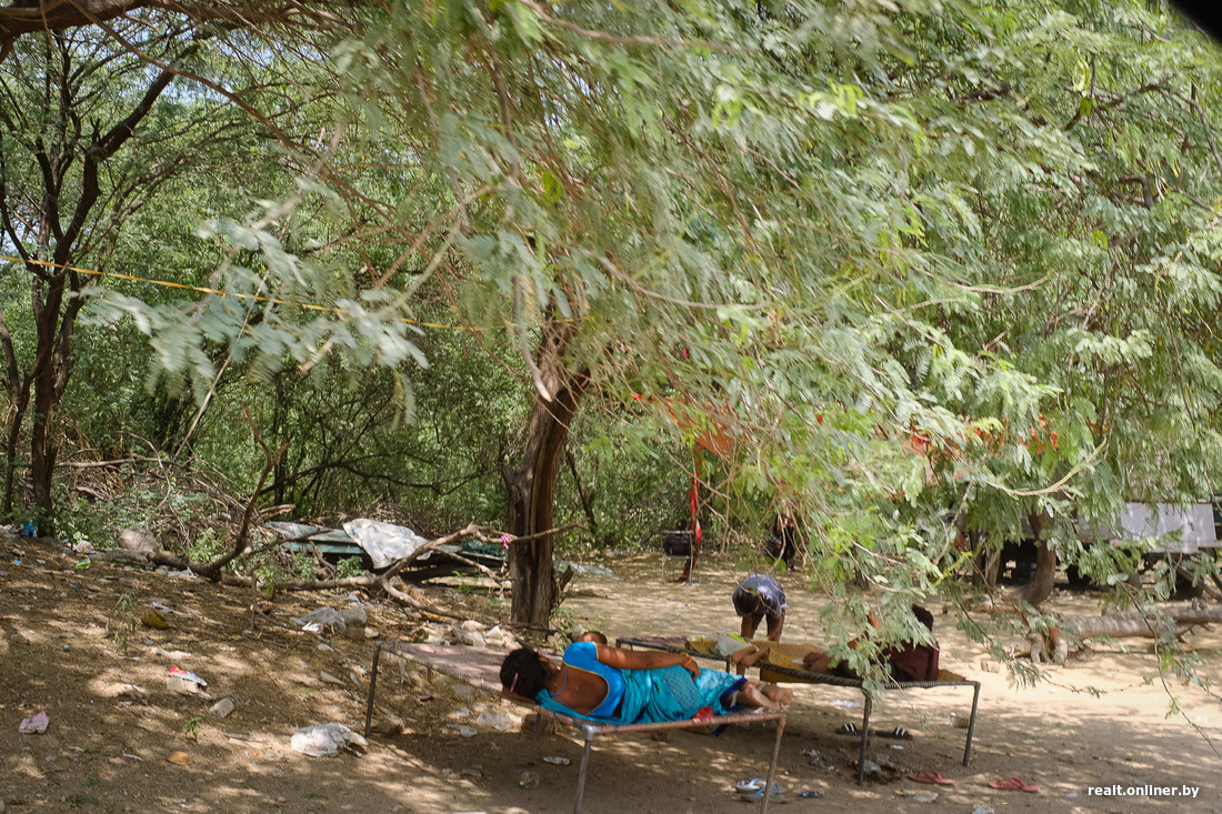 Никто не ведет учет людей, которые живут на этой территории, — это просто самовольно занятая земля. По словам нашего водителя, в основном здесь живут мусорщики, уборщицы, водители рикш — крайне бедные люди.