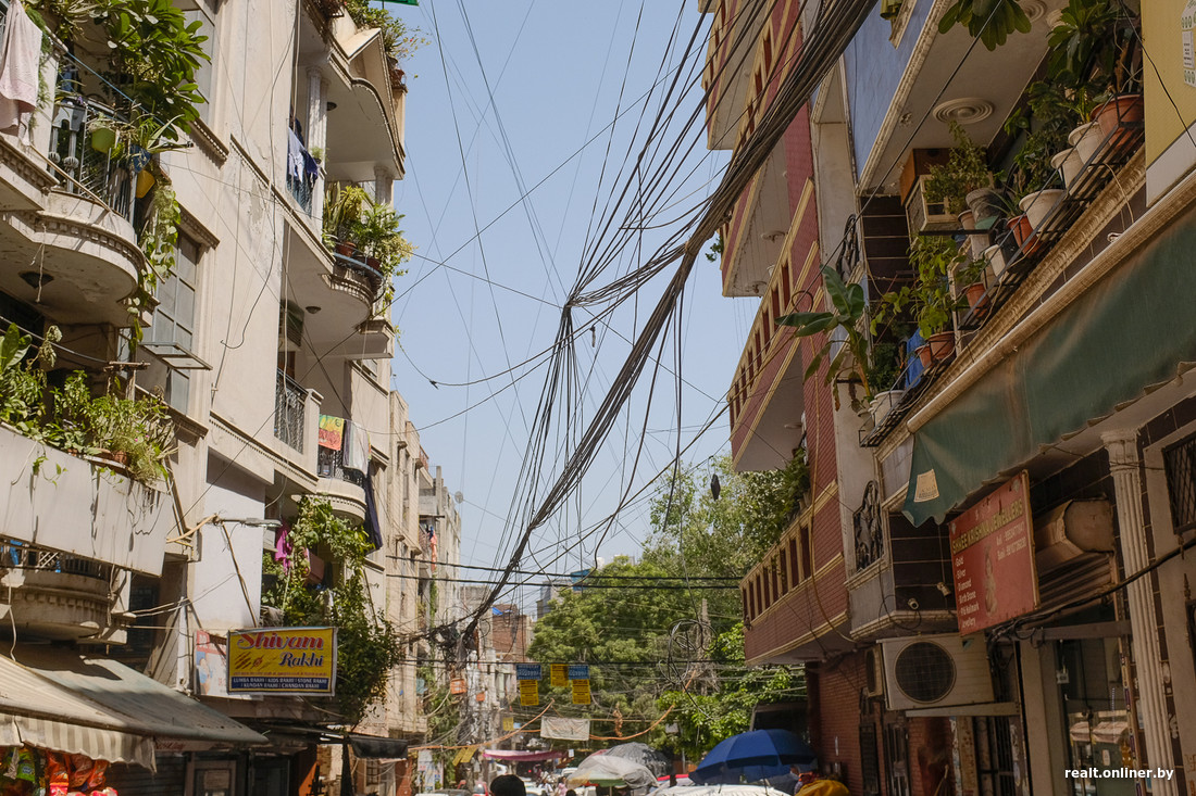 Над головой тянутся бесконечные связки из проводов — это отличительная особенность Индии. Говорят, электрикам проще бросить новый кабель, чем разбираться, куда и какой из них ведет.