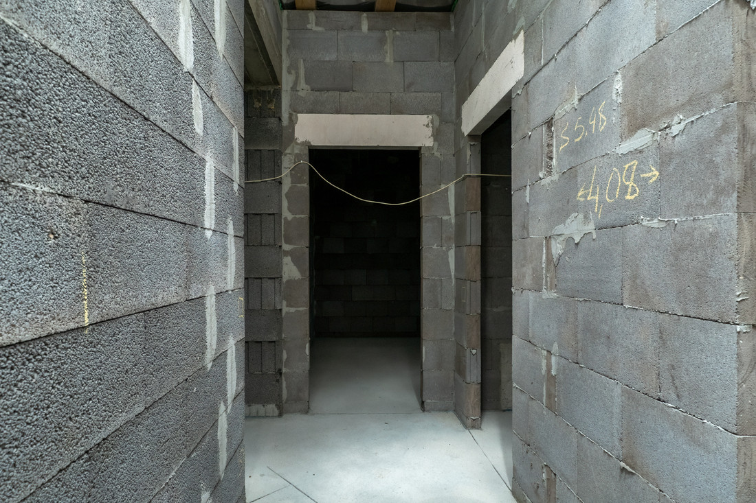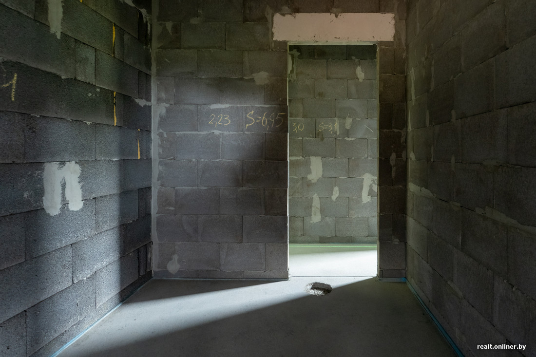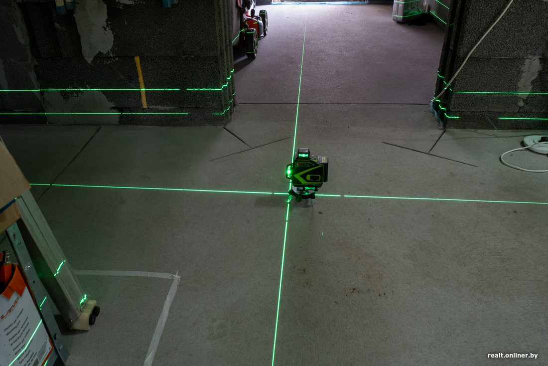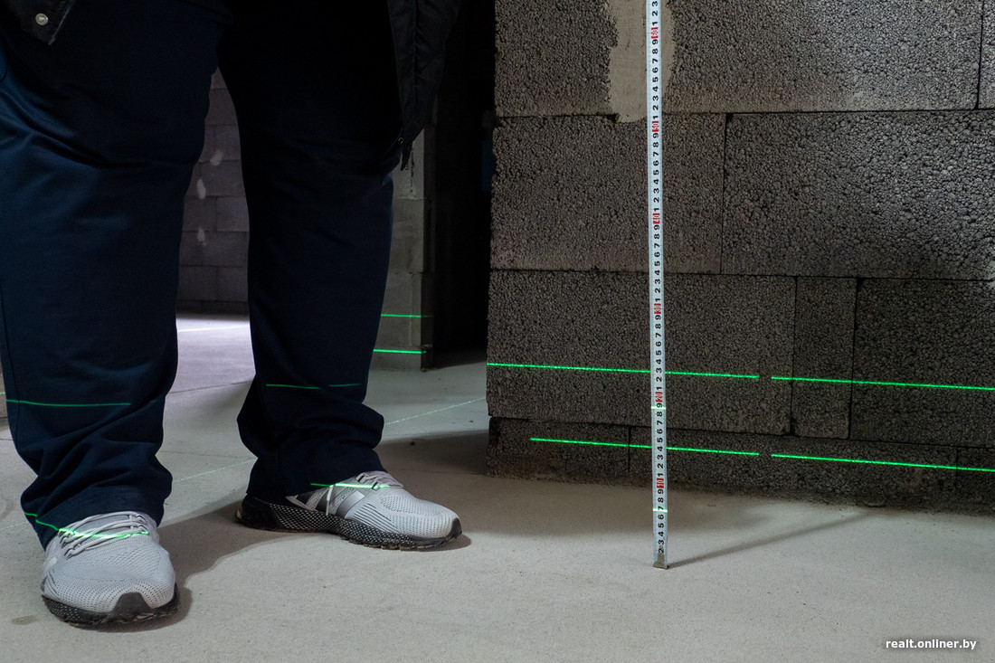 — Заодно дам совет, — продолжает Андрей. — Зная назначение помещений и будущее расположение мебели, сразу же продумайте, где вам важны углы в 90 градусов. Соответственно, там и прикладывайте максимум усилий (надзора). Тогда вам понадобится меньше штукатурки во время отделочных работ, ведь иногда для прямого угла приходится накладывать 5-сантиметровый слой. Если угол «пустой», без мебели, то вполне можно оставить его в покое. Но если вы планируете установить шкаф или ванну, то лучше сразу подготовить для этого «почву».