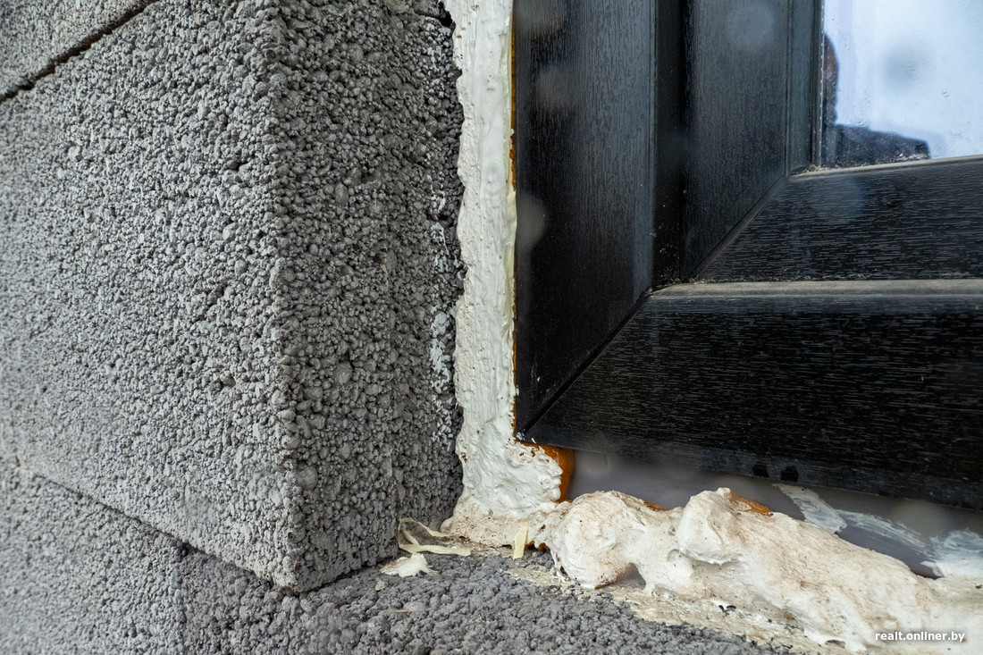 — Очень верно выполнена и гидроизоляция оконных проемов, — показывает специалист. — Я говорю про герметик «Стиз-А» для наружного нанесения. К сожалению, посещая различные объекты, часто вижу, что монтажники игнорируют этот этап. И совершенно зря: благодаря нанесению данного материала монтажная пена, которая находится в оконном проеме, не набирает влагу и в итоге вокруг оконного проема не появляются места промерзания. А значит, вы не столкнетесь с плесенью, теплопотерями здания. Обязательно следите за тем, чтобы снаружи периметр был промазан мастикой «Стиз-А», а изнутри — пароизоляционным герметиком «Стиз B».