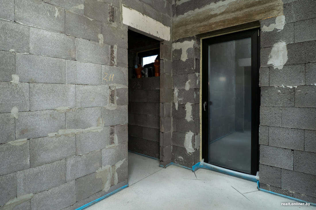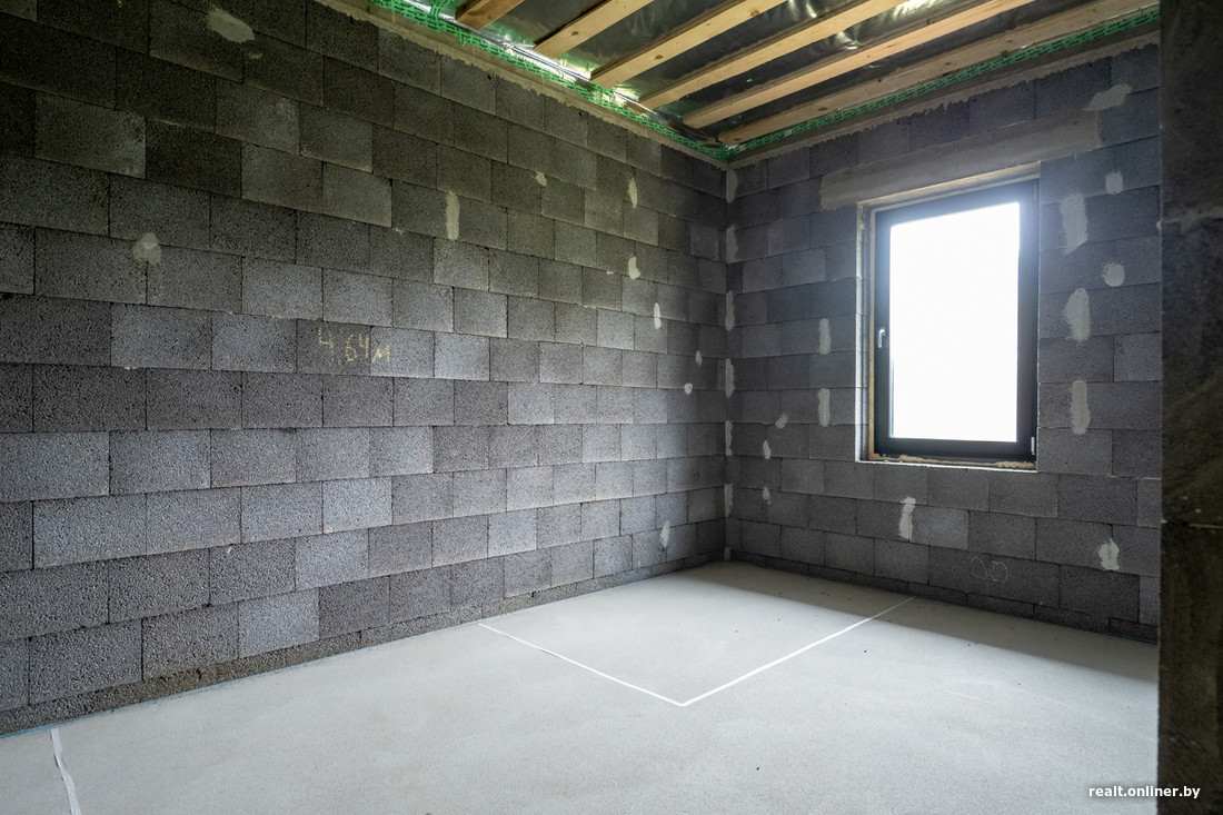 Черновой отделки в доме нет, этот этап у хозяев еще впереди. А вот стяжка уже залита. Помимо того что она ровная и крепкая, Андрей отмечает еще один момент: в районе углов сделаны дополнительные деформационные швы — небольшие «отсечки», которые помогают снять «напряжение» в стяжке и предотвратить появление хаотичных трещин, которые мы так часто видим на приемке квартир.