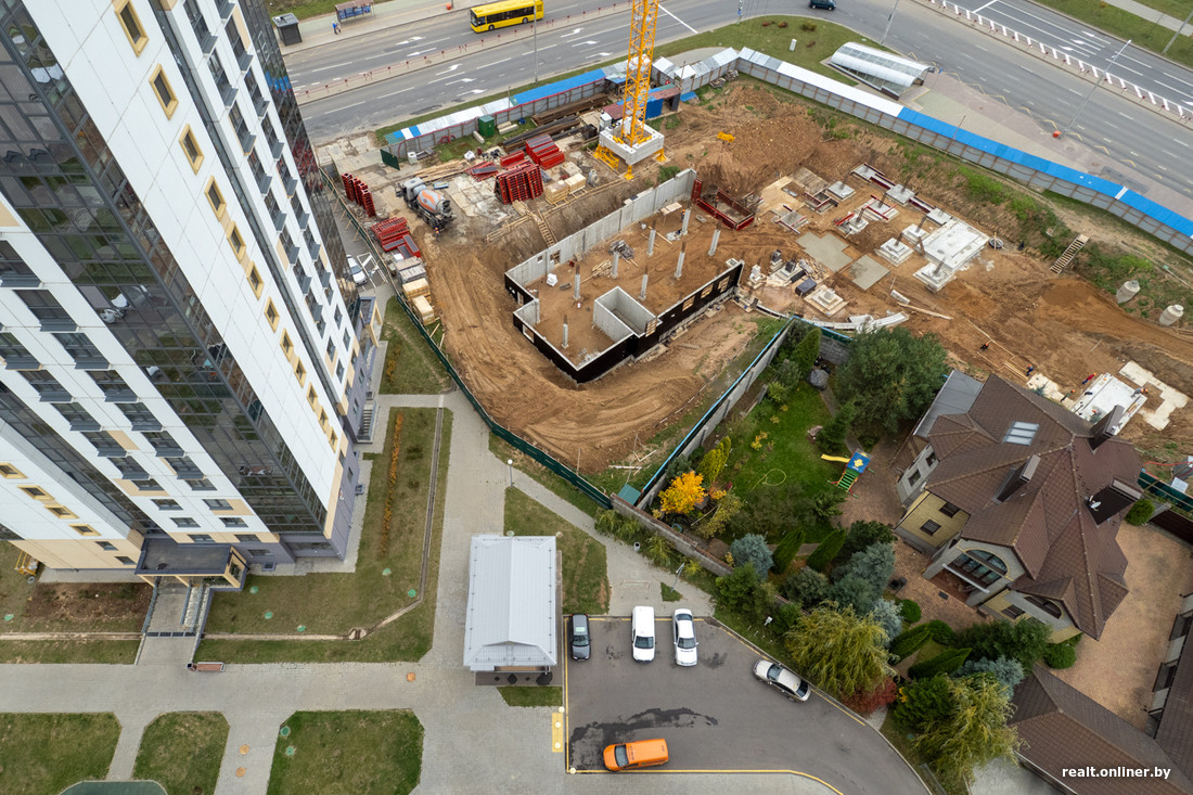 Судя по паспорту объекта, возводят тут детскую поликлинику для микрорайона Лошица-9, на 480 посещений в смену. Заказчик — УКС Мингорисполкома, генподрядчик — стройтрест №35. Возводить соцобъект начали этой весной, закончить планируют спустя два года, в мае 2025-го.
