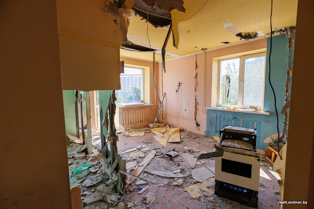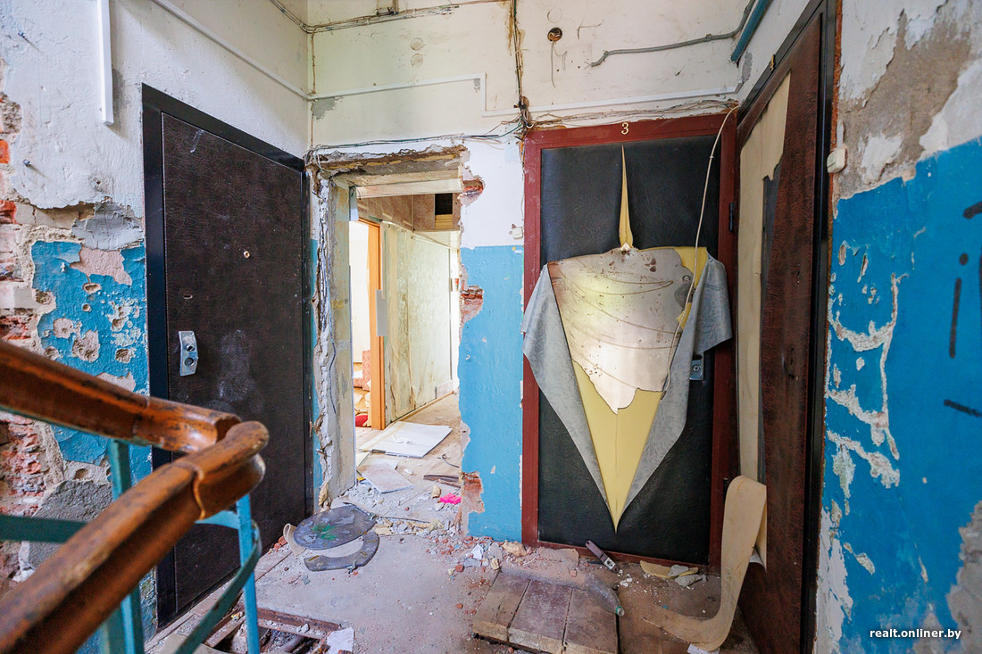 Здание было прописано по Машерова, 36. В середине августа мы прогуливались по его квартирам, которые оставили хозяева. Отселение случилось «в связи со строительством третьей очереди Зеленолужской линии метрополитена». Вот как трехэтажный дом выглядел внутри и снаружи. Может, вы даже в нем когда-нибудь жили.