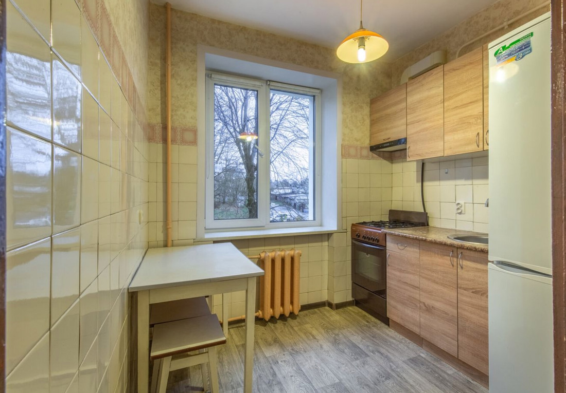 За $39 900 в эквиваленте можно обзавестись еще одним объектом. На этот раз речь об однушке, которая находится на улице Уручской, в пешей доступности от одноименной станции метро. Размер жилья — 31,9 кв. м. Его главное преимущество в том, что оно уже подготовлено к ремонту — хозяева даже новую стяжку успели залить. Поэтому вам не нужно будет тратить время на то, чтобы избавиться от следов истории длиной в 52 года (именно такой возраст у дома).