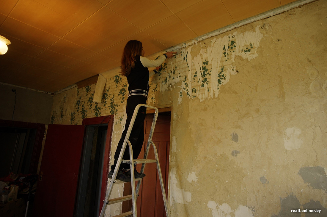 В авантюру по восстановлению «маёнтка» Екатерина предусмотрительно шагнула не одна. Верным соратником и помощником (с горящими глазами) стала ее подруга Светлана. Теперь девушки вдвоем «на хозяйстве»: своими руками разгребают завалы, снимают старую отделку (сколько слоев обоев вы видите на этих стенах?), делают ремонт, закупают стройматериалы и бесконечно консультируются с научным руководителем.